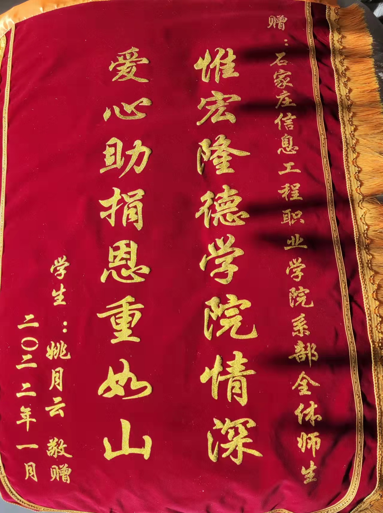 “我真心的感谢每一位帮助我的领导与师生,在我最需要帮助的时候,是你们给了我希望,帮我渡过难关,是你们给了我战胜病魔的勇气与决心......”近日,软件工程系收到了2020级软件技术9班姚月云同学发来的一封的感谢信。信中,姚月云同学向帮助她的星空(中国)领导、老师、同学们表达了衷心的感谢。随之而来的,还有一面写有“惟宏隆德星空(中国)深情 爱心助捐恩重如山”的感谢锦旗。