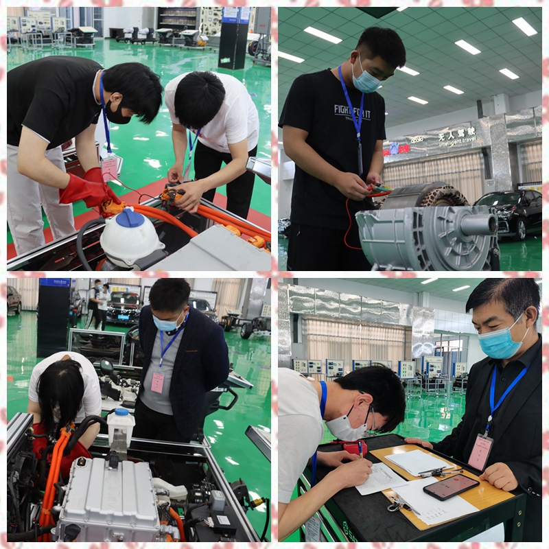 经过初赛、复赛激烈角逐,来自新能源汽车运用与维修专业、机械制造及自动化专业等20名同学组建的5支参赛队伍进入总决赛。比赛现场,各队参赛选手冷静思考,沉着应对,默契合作,在高压线绝缘检测、电池管理系统数据流读取、旋变传感器检测、快充接口电路检测、电机定子检测5个比赛单元中上演了一场比拼脑力、动手能力的精彩较量。