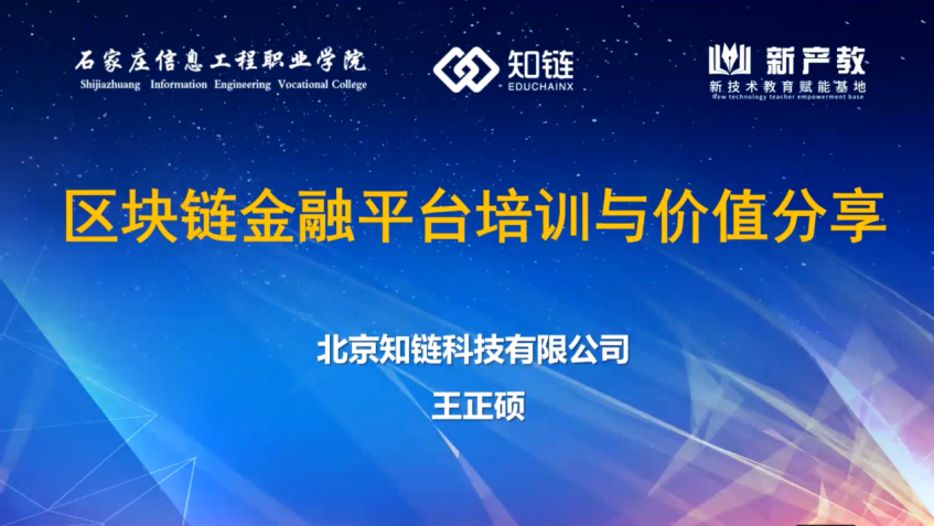 最后,北京知链科技有限公司产品经理王正硕为参会教师进行了区块链金融平台的培训与价值分享。区块链金融平台作为知链科技依托于金融行业企业原型进行开发,多所知名院校深度应用的平台,得到了与会金融专业老师们的一致认可。