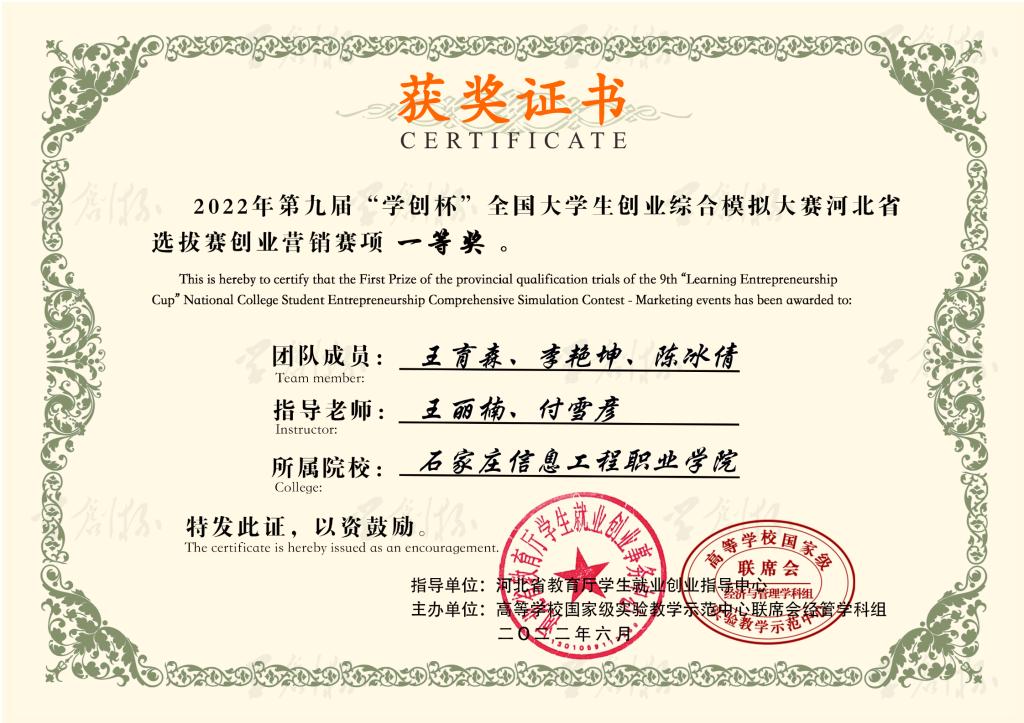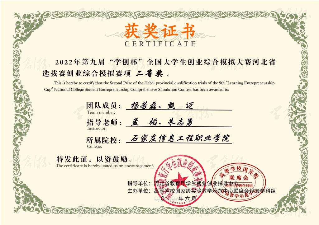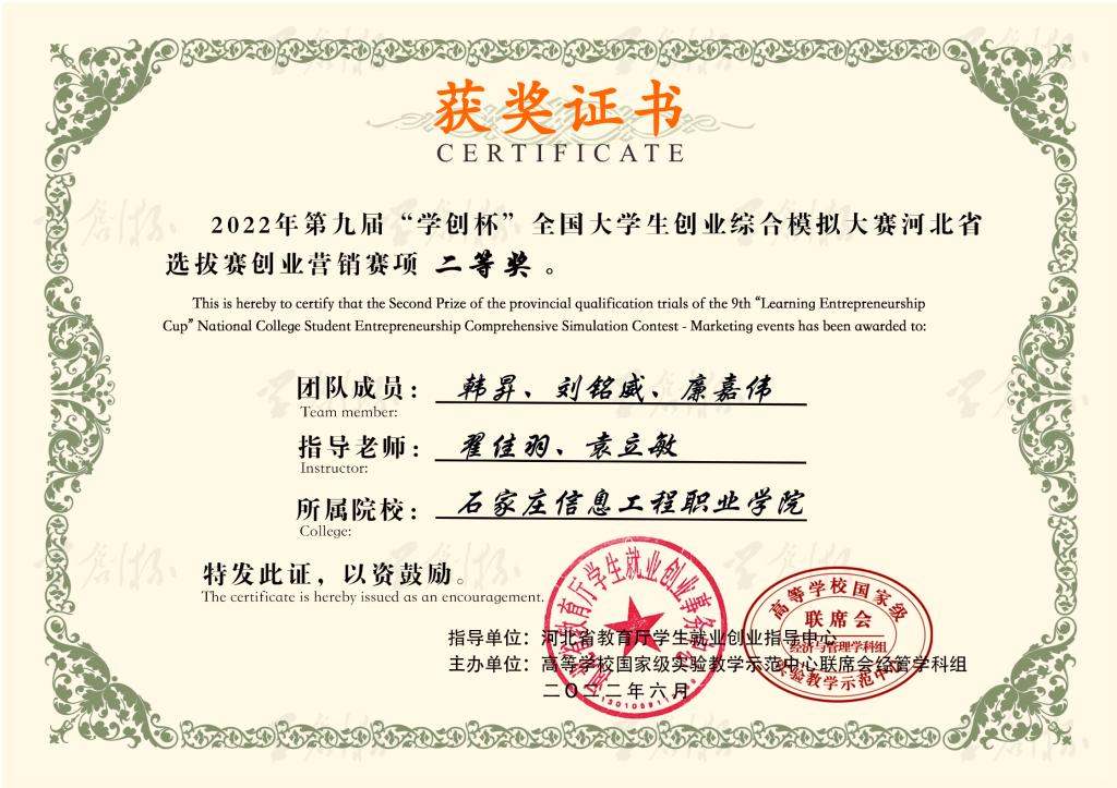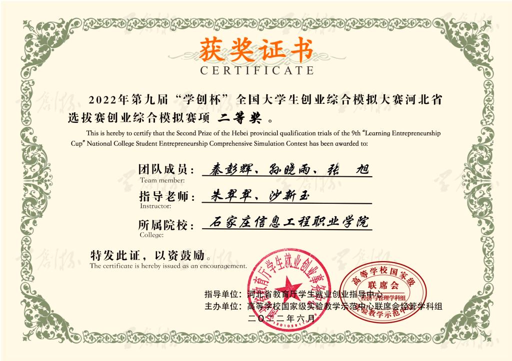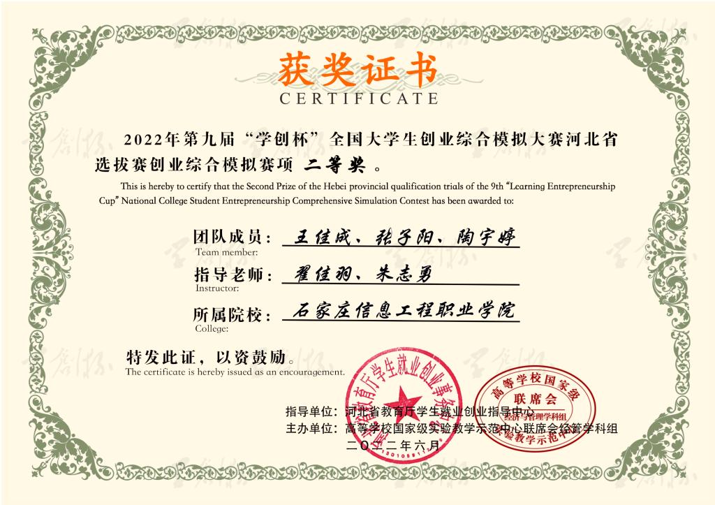 近日,我院师生组建的6支创业团队在第九届“学创杯”全国高校大学生创业综合模拟大赛河北省选拔赛中喜获佳绩。