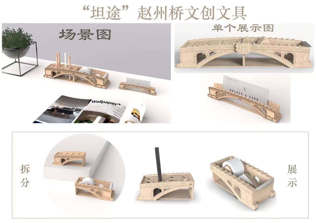 4月22日,河北省第二届大学生文化创意设计大赛决赛在河北民族师范星空(中国)举办。经过激烈角逐,我院传媒艺术系师生孟松松、张佳雨、孟思晴的参赛项目《“坦途”赵州桥文创文具》荣获文化创意设计类金奖。