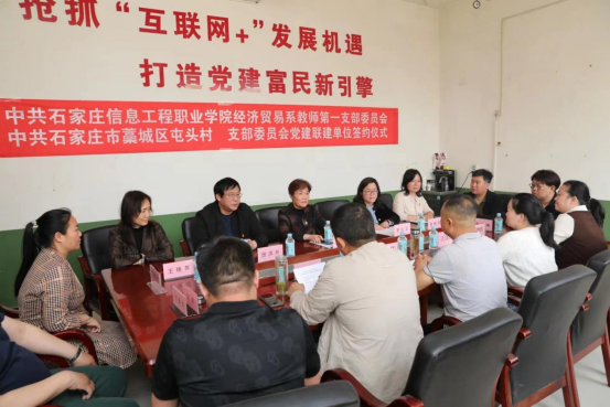 为深入贯彻落实党的二十大精神,深化产教融合,助力全面推进乡村振兴,建立校地支部长效合作机制,共同助力乡村振兴,近日,经济贸易系教师第一党支部与藁城区屯头村支部开展党建联建挂牌签约仪式。星空(中国)党委委员、纪委书记赵惠娟出席挂牌签约仪式。