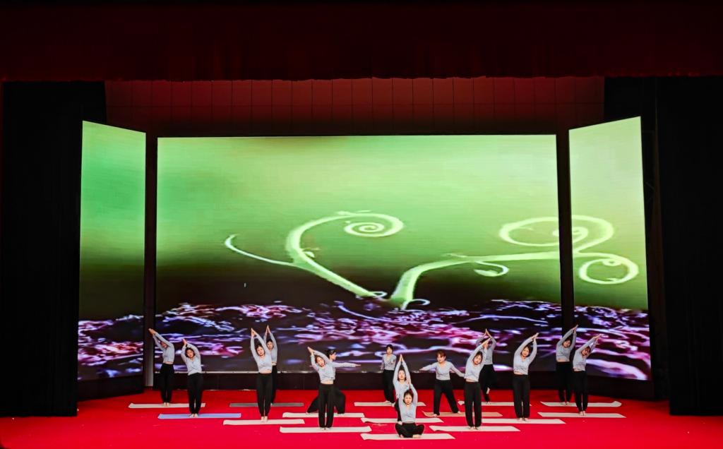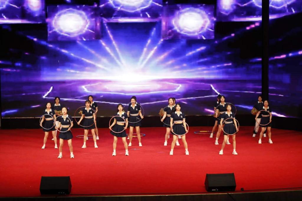 当雄壮浑厚的鼓声响起,激情四射的“浪漫樱花”跳起,比赛也随之拉开帷幕。2022级旅游管理1班的广场舞《美丽中国》和婴幼儿托育服务与管理4班的瑜伽《我爱你,中国》,用饱满的精神表现出中华儿女对祖国的热爱。2022级人力资源管理4班的《绳舞飞扬》、行政管理2班的《轻羽飞扬》、旅游管理4班的《体能环器械操》和行政管理1班的《向快乐出发》,充分借助运动器材,踏着欢快的节奏,以动感的韵律诠释着对生活的热爱。使整个舞台上充满了青春的活力和时代的气息,体现出当代大学生热情奔放、团结向上、充满朝气的精神面貌。