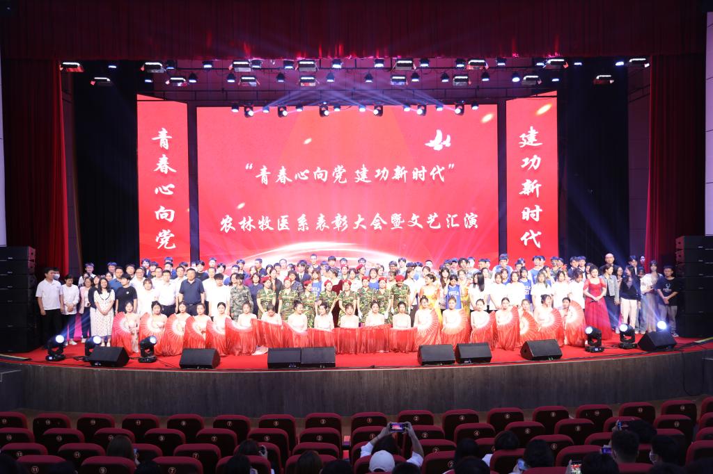 文艺汇演结束后,与会领导、老师与演职人员一同合影留念。学生处相关负责人、农林牧医系全体教师及学生代表700余人参加。