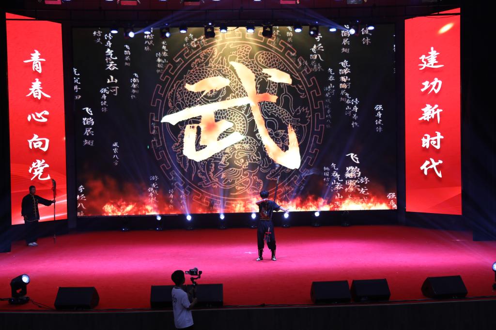 表彰大会结束后,精彩的文艺汇演在舞蹈《中国军魂》中拉开了帷幕,振奋人心的舞蹈展现了军人们英勇无畏、坚强果敢和不畏牺牲的精神,谱写出一曲不怕牺牲、视死如归的豪迈战歌;朗诵《初心之问》以革命先辈与当代青年穿越时空对话的方式,展现了革命先辈为国家富强、民族复兴而英勇奋斗的精神;小品《时间都去哪了》用幽默风趣的表演方式,演绎了时间从指间流逝的窘迫,警示我们必须珍惜时间,赢得了现场观众的阵阵掌声;武术表演《龙飞虎跃》刚劲潇洒,行云流水,势如破竹,雄姿英发,展现出信工青年自强不息、发奋图强的精神气概,把整个文艺汇演推向了高潮;集体舞《万疆》展现出青年对祖国山河的热爱与眷恋,把青春热血融入祖国建设的美好愿景。一个小时的文艺汇演,精彩纷呈、热闹非凡,赢得了在场领导、师生的一致好评。