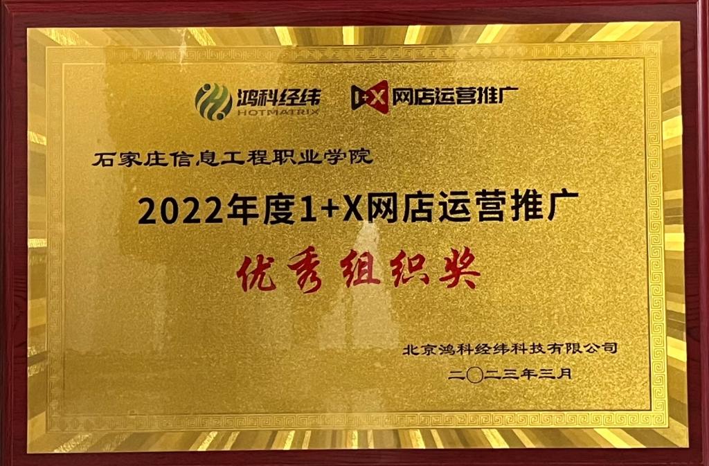经济贸易系2022年1+X网店运营推广试点工作,得到北京鸿科经纬科技有限公司的高度肯定,并获得2022年度优秀组织奖。