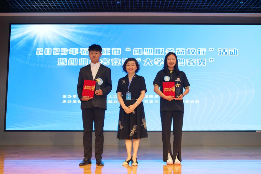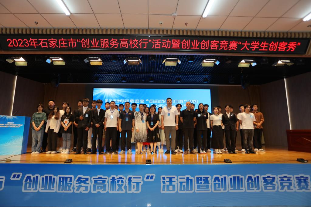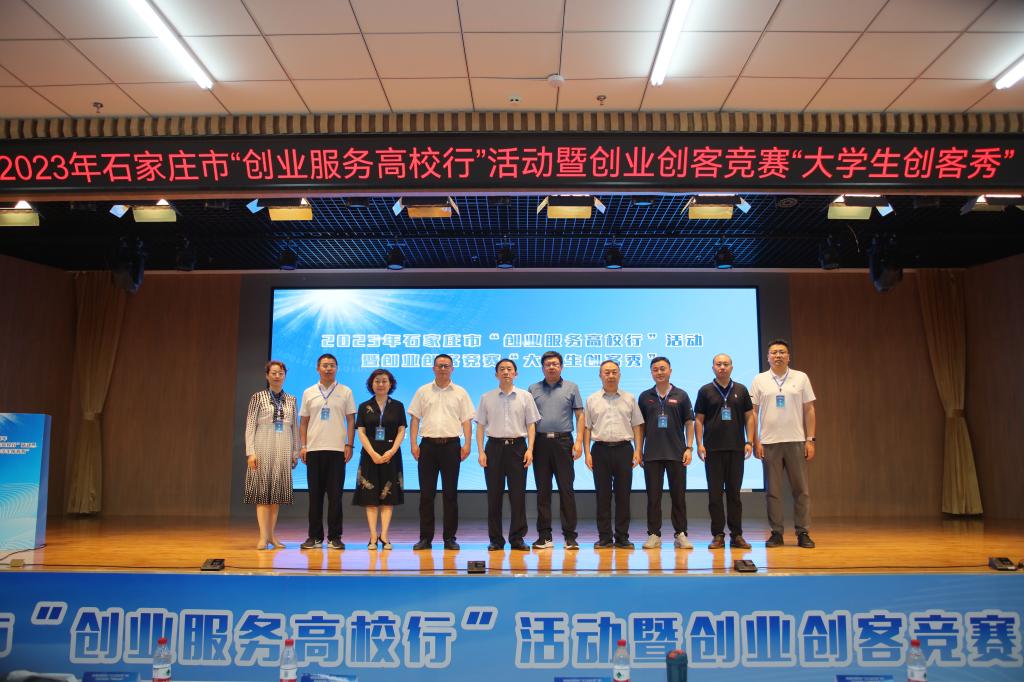 6月13日,由石家庄市人力资源和社会保障局主办,石家庄市就业服务中心和我院共同承办的2023年石家庄市“创业服务高校行”活动暨创业创客竞赛“大学生创客秀”在我院图书馆一楼报告厅圆满收官。石家庄市就业服务中心副主任纪学宏、就业培训管理科科长时贵杰,我院副院长赵伟,党委委员、组宣部部长范成宝出席活动。