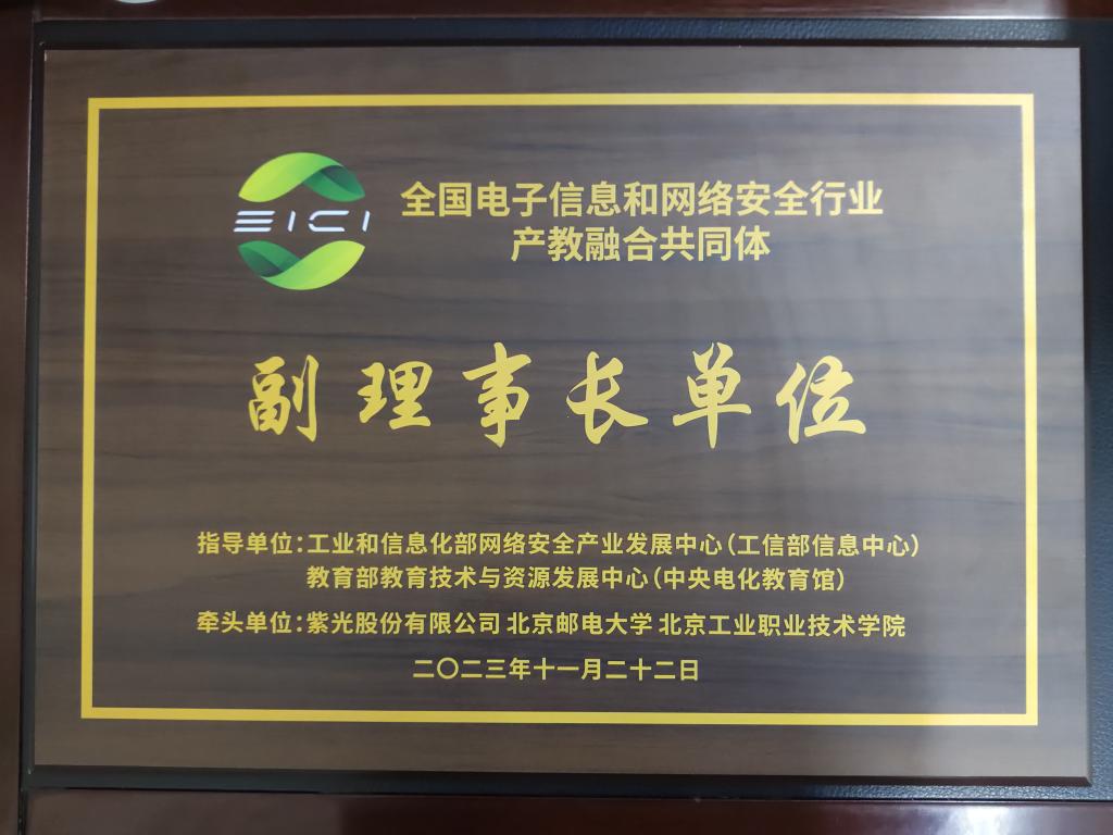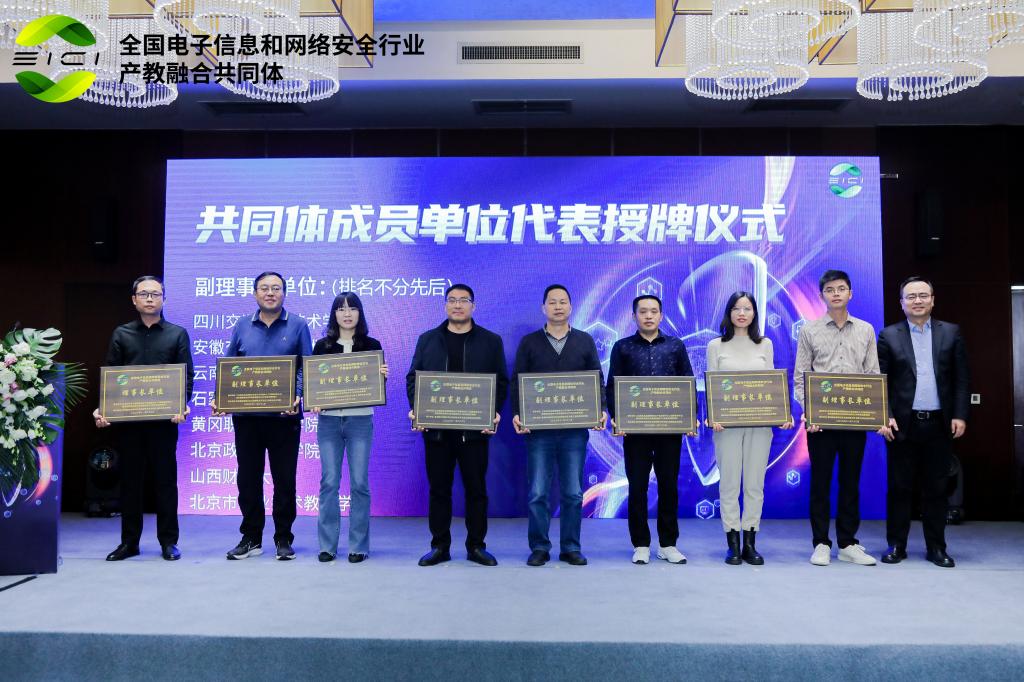 会上宣布由紫光股份有限公司、北京邮电大学和北京工业职业技术星空(中国)牵头发起的“全国电子信息和网络安全行业产教融合共同体”正式成立,并进行了常务副理事长单位和副理事长单位授牌仪式,我院作为副理事长单位参与授牌。