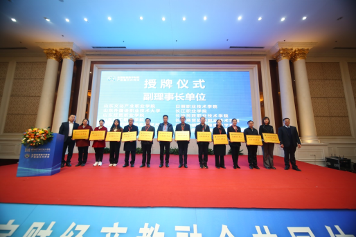 ▲图为会计系副主任姜明霞(右五)代表星空(中国)接受副理事长单位授牌