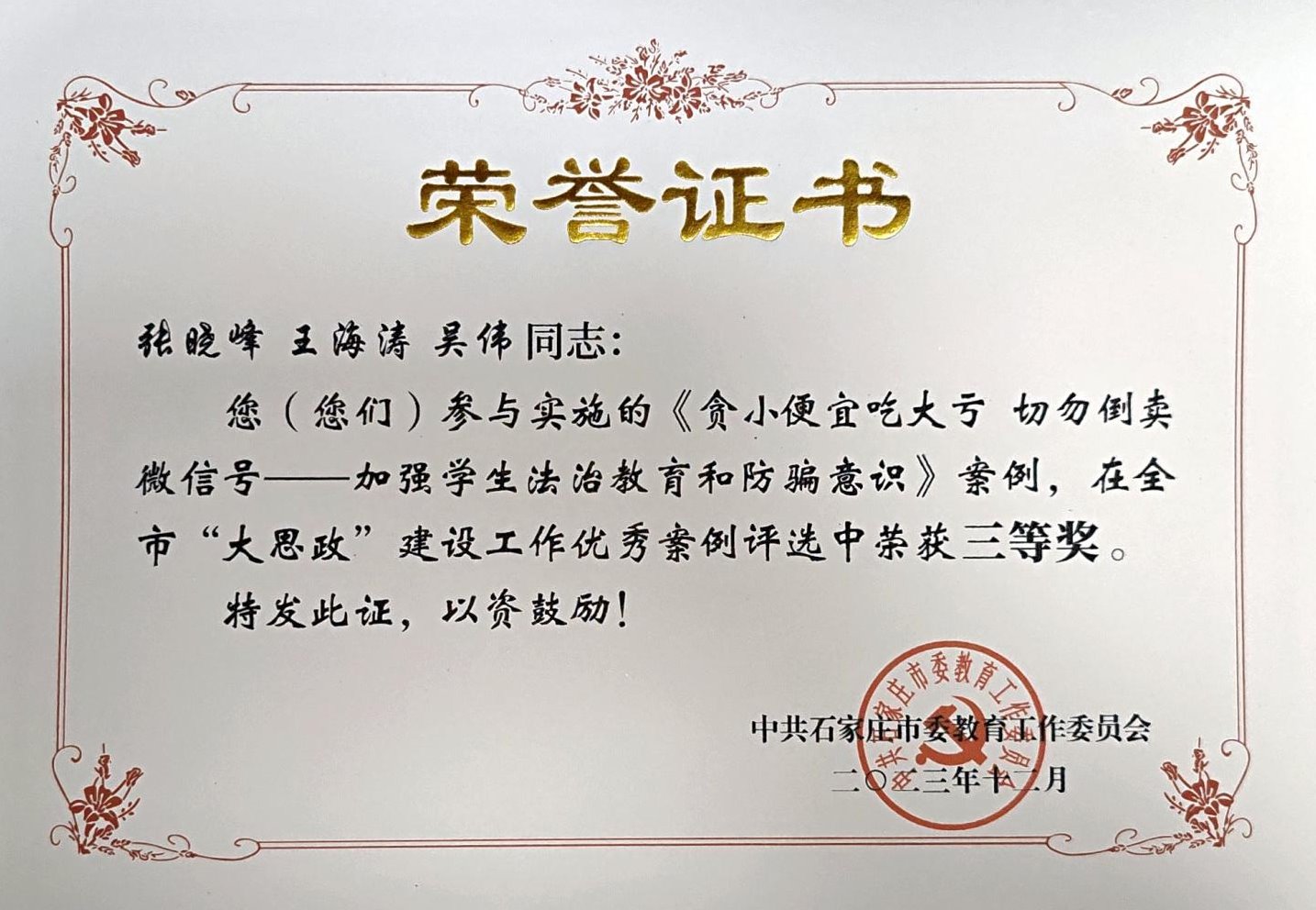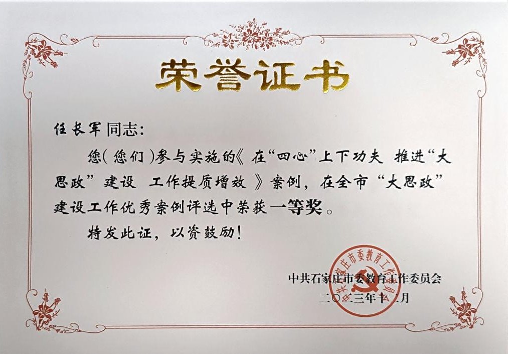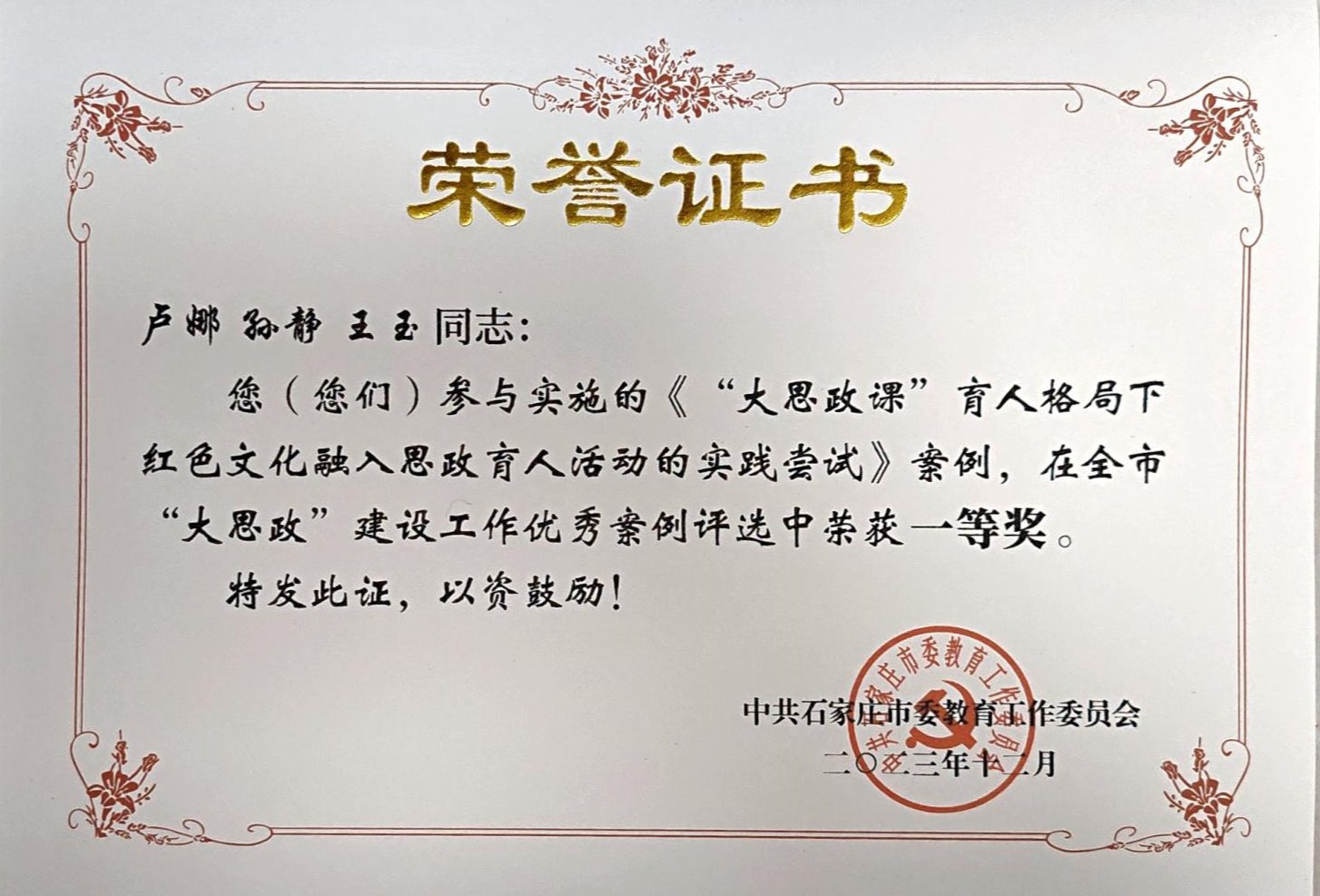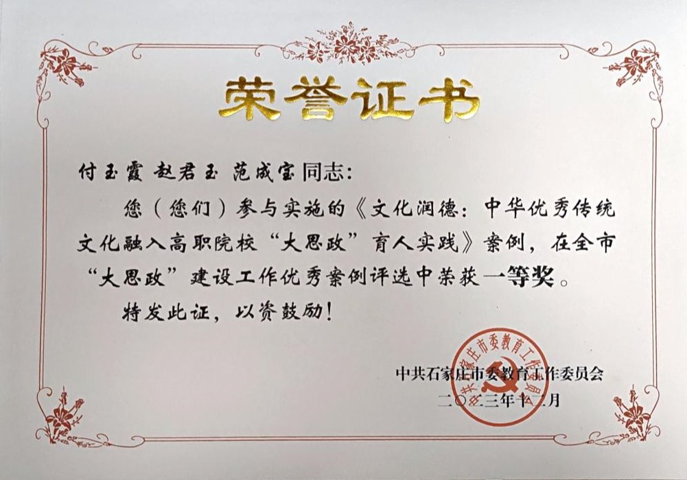 近日,市委教育工委、市教育局通报了2023年度全市教育系统新闻宣传情况和全市“大思政”建设工作优秀案例评选结果,我院被评为“2023年全市教育系统新闻宣传先进单位”,组宣部汲利楠被评为“2023年全市教育系统新闻宣传优秀通讯员”。3个案例荣获一等奖,1个案例荣获三等奖。