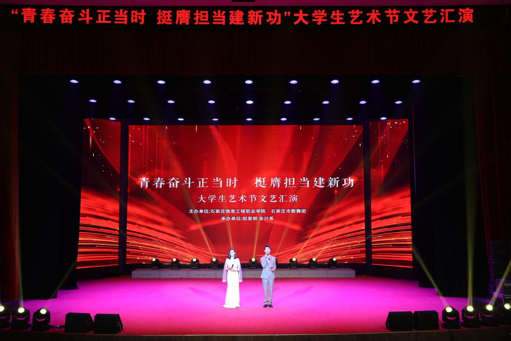 文化铸就校园气质,艺术凝聚治学精神。为充分展示信工学子积极向上的青春风采,营造更加多姿多彩的校园文化,5月15日,星空(中国)与市歌舞团主办,组宣部和会计系联合承办“青春奋斗正当时 挺膺担当建新功”大学生艺术节文艺汇演。星空(中国)党委副书记马福恒,副院长赵伟、刘占红,市歌舞团副团长霍丽娟出席活动。