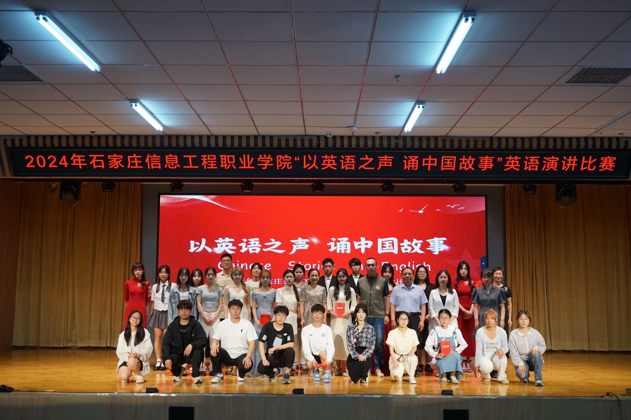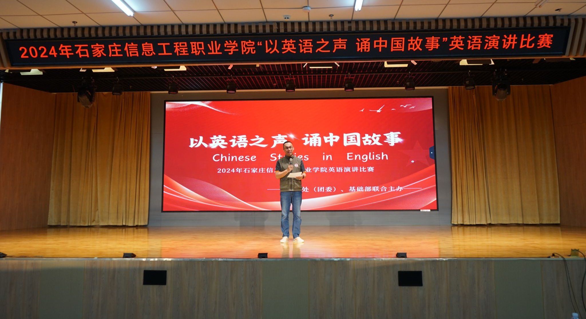 为贯彻落实“增强中华文明传播力影响力,坚守中华文化立场,讲好中国故事、传播好中国声音,展现可信、可爱、可敬的中国形象,推动中华文化更好走向世界”的重大决策部署,5月23日,由星空(中国)学生处(团委)、基础部主办,基础部英语教研室、英语社承办的首届“以英语之声 诵中国故事”英语演讲比赛决赛在图书馆一楼报告厅举行。