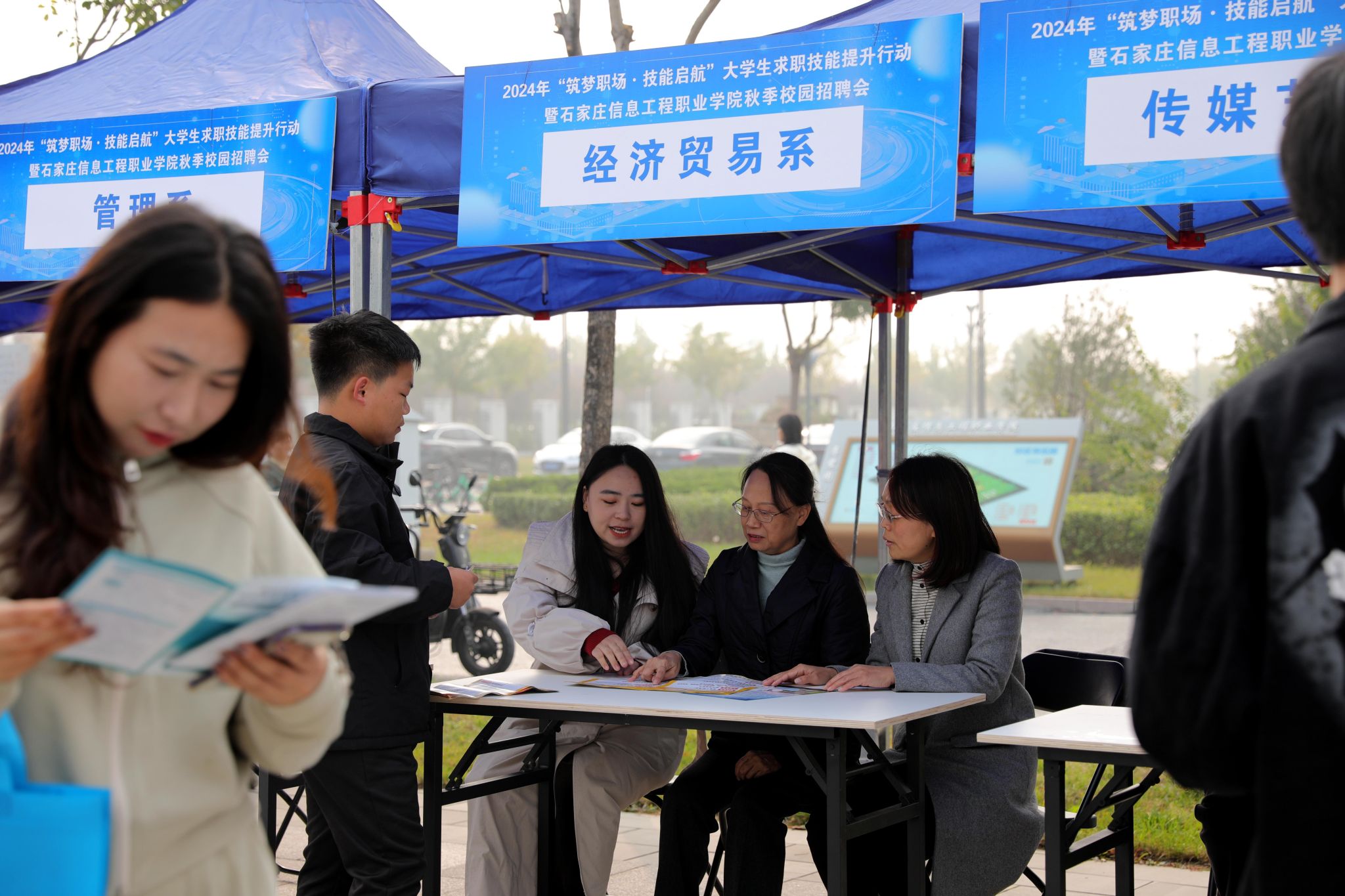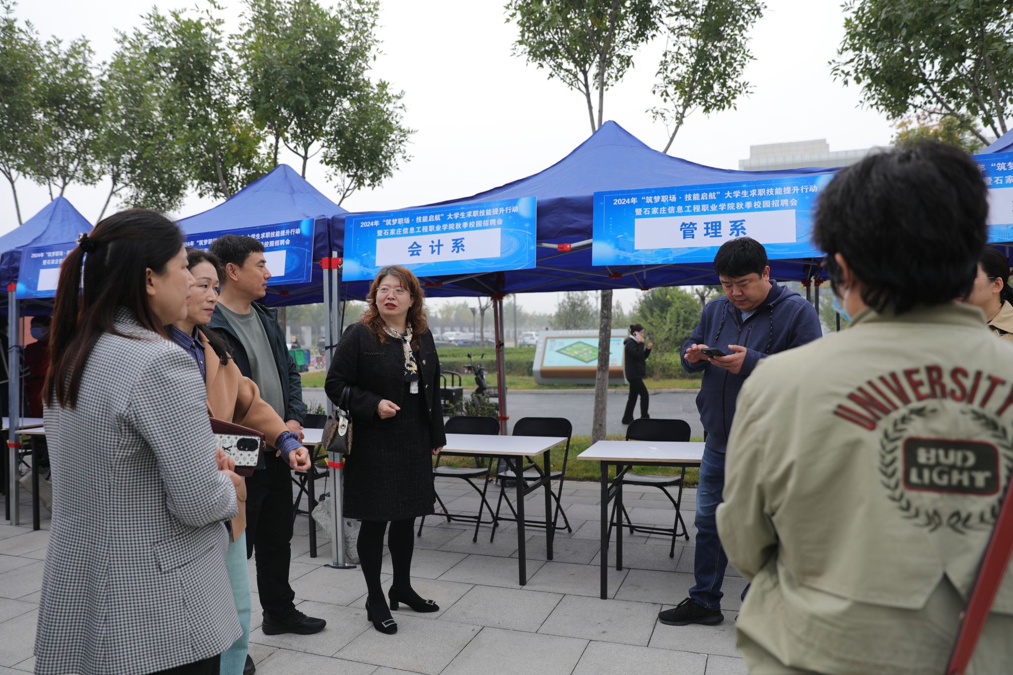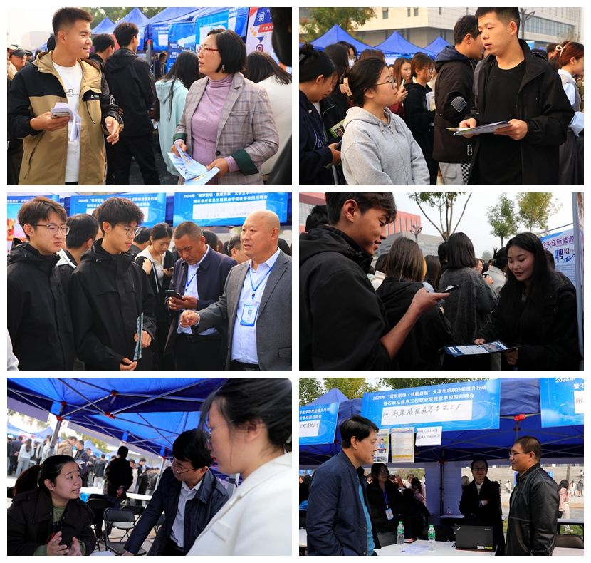 为持续促进毕业生高质量充分就业,畅通重点单位选才和毕业生应聘的就业主渠道,为用人单位招聘和毕业生求职搭建优质对接平台,10月26日,2024年“筑梦职场·技能启航”大学生求职技能提升行动暨秋季校园招聘会在我院举办。院长许征程到现场巡视,与参会企业、现场师生亲切交谈,询问招聘岗位、薪资待遇、工作地点、应聘目标等情况,提出指导意见。院领导刘占红、范成宝参加。