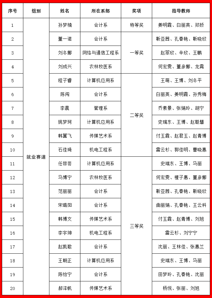 大赛的成功举办不仅为同学们提供了展示自我、规划未来的舞台,也进一步推动了我院生涯教育和就业指导工作的开展,我们将持续以各类创新创业大赛为抓手,不断完善“就业思政”体系,做实做细就业指导服务,深入开展职业生涯规划教育,强化就业育人,以赛促学、以赛促教、以赛促就,全力引导学生结合专业学习和社会实践,全面提升就业能力。