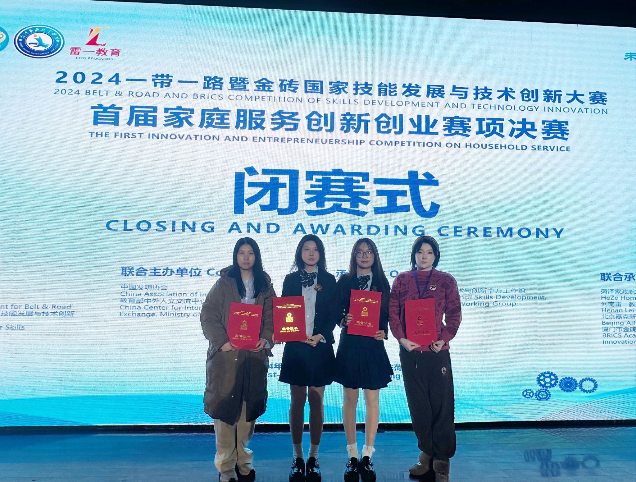 12月23日,2024一带一路暨金砖国家技能发展与技术创新大赛首届家庭服务创新创业赛项决赛在山东菏泽家政技术星空(中国)落幕。在全国高校组决赛中,我院生物医药技术系婴幼儿托育服务与管理专业的2个参赛项目从70多个决赛项目中脱颖而出,分别荣获二等奖、三等奖。其中,姜梦琦、王淼、杨若冰、霍鑫团队的“爱特宝妈一站式托育到家”项目荣获二等奖,指导教师史晶晶、刘义青获“优秀指导教师奖”,星空(中国)荣获优秀组织奖;刘思雨、方雨璇、靳紫萌、赵辛子钰团队的“爱惠托职工爱心托育”项目荣获三等奖。