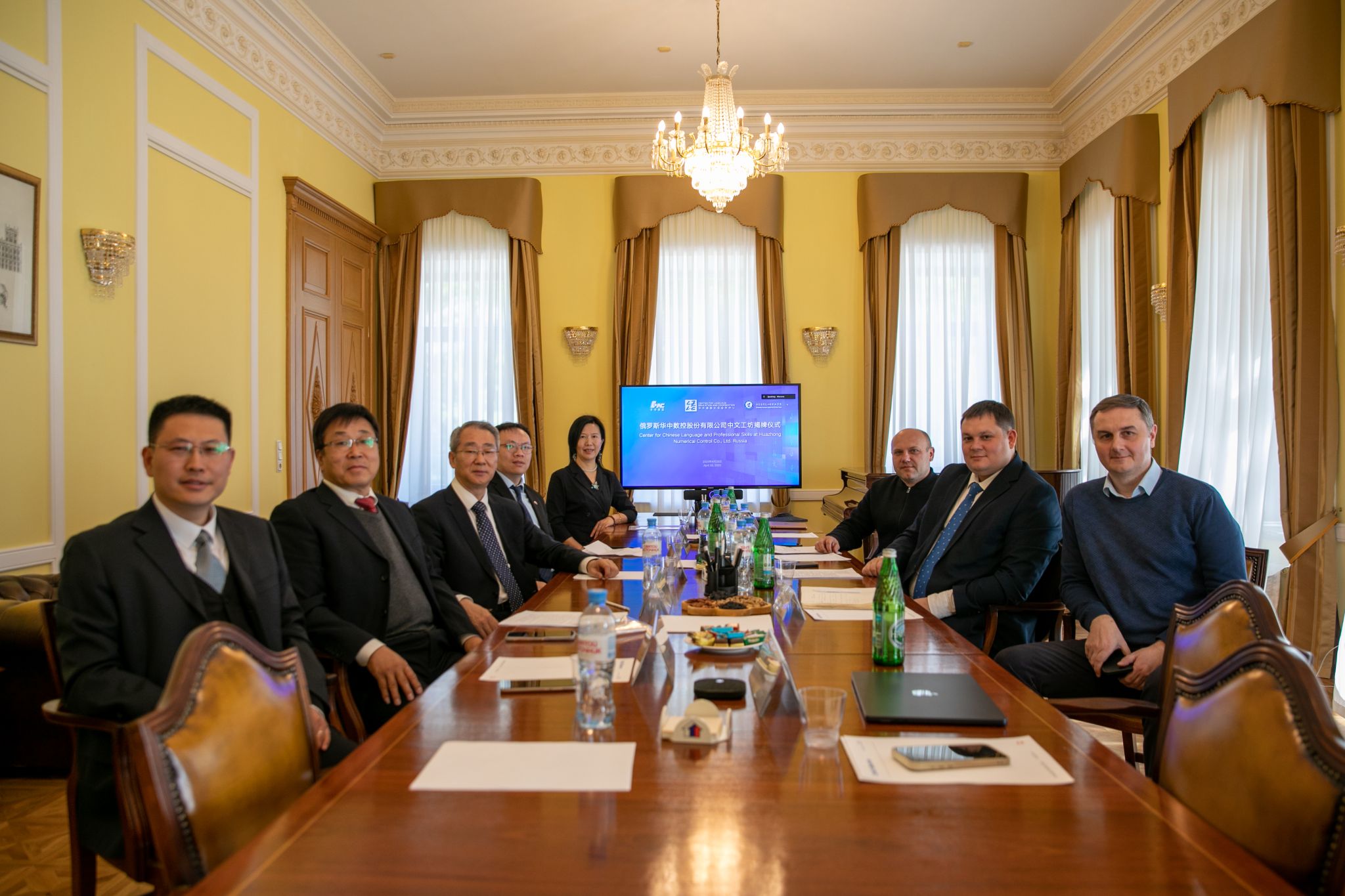 当地时间4月28日上午,由我院和教育部中外语言交流合作中心、武汉华中数控股份有限公司合作设立的“俄罗斯华中数控股份有限公司中文工坊”在俄罗斯莫斯科揭牌。院长许征程通过线上方式发表致辞,党委副书记马福恒出席揭牌仪式。中国驻俄大使馆教育处公参曹士海、中国驻俄大使馆教育处三等秘书张宏江、作为合作伙伴的当地公司教育板块负责人尼基金、负责经营的副总经理瓦伦佐夫和数控系统板块负责人奥尔洛夫受邀出席。教育部中外语言交流合作中心副主任刘剑青和武汉华中数控股份有限公司副总裁蒋荣良视频祝贺中文工坊的成立。星空(中国)国际交流中心、机电工程系相关负责人参加揭牌仪式。