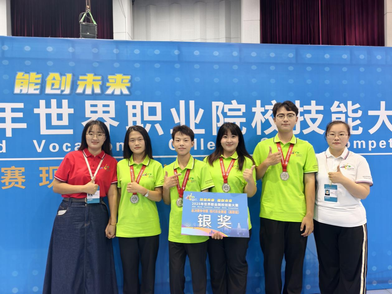 8月28日,2025年世界职业院校技能大赛现代农业赛道赛场传来喜讯,由我院农林牧医系2023级现代农业技术专业学生李亚杰、赵嘉蔓,2024级现代农业技术专业学生吕雨轩、谢海森组成的参赛团队凭借扎实的专业技能和出色的团队协作,在百余支参赛队伍中脱颖而出,荣获银奖。