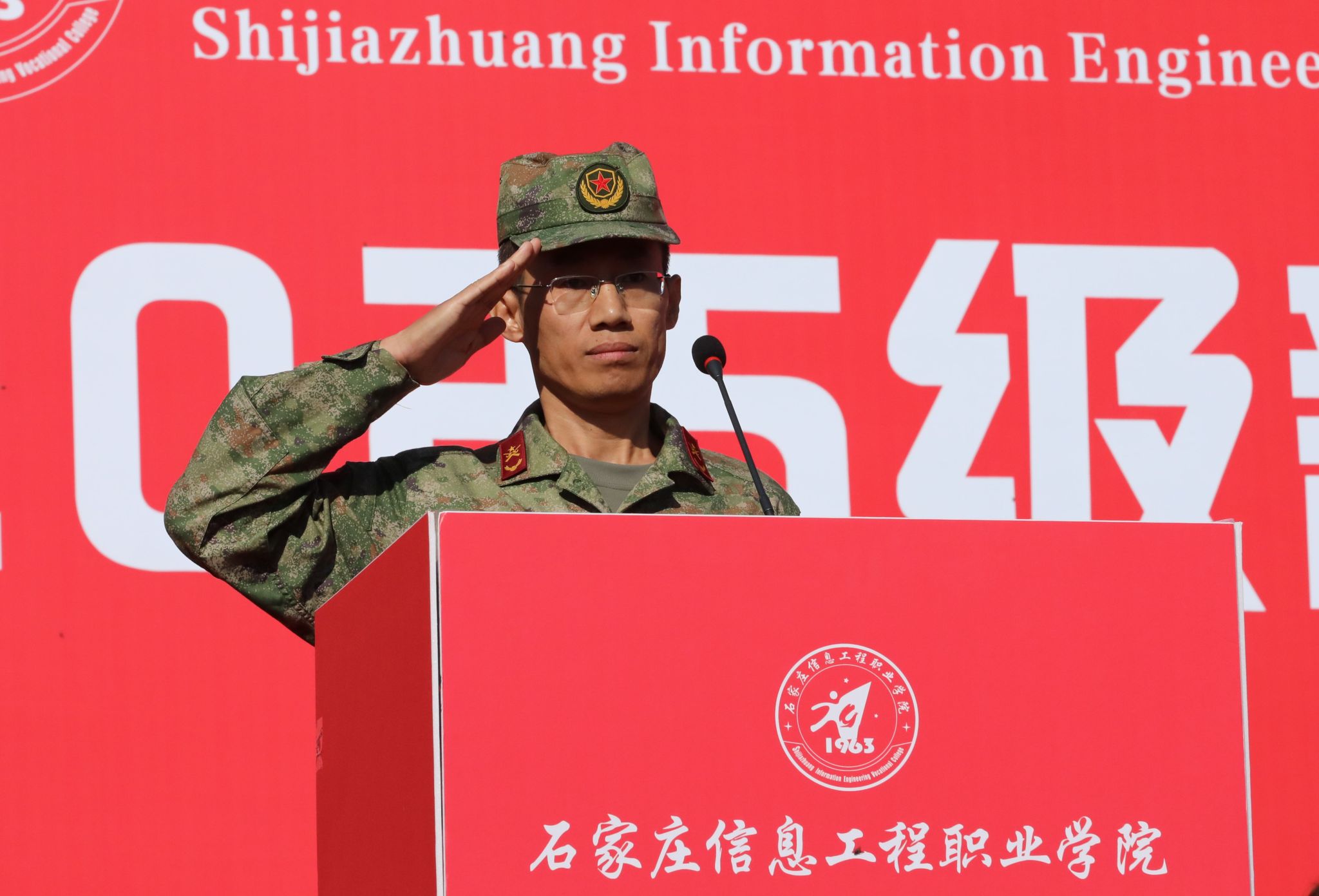 藁城区武装部参谋孙志刚代表全体教官郑重承诺,将以身作则,做好表率;科学组织,文明施教;严管厚爱,确保安全。希望大家端正态度、勇于挑战、遵守纪律、听从指挥、团结互助、磨炼意志。