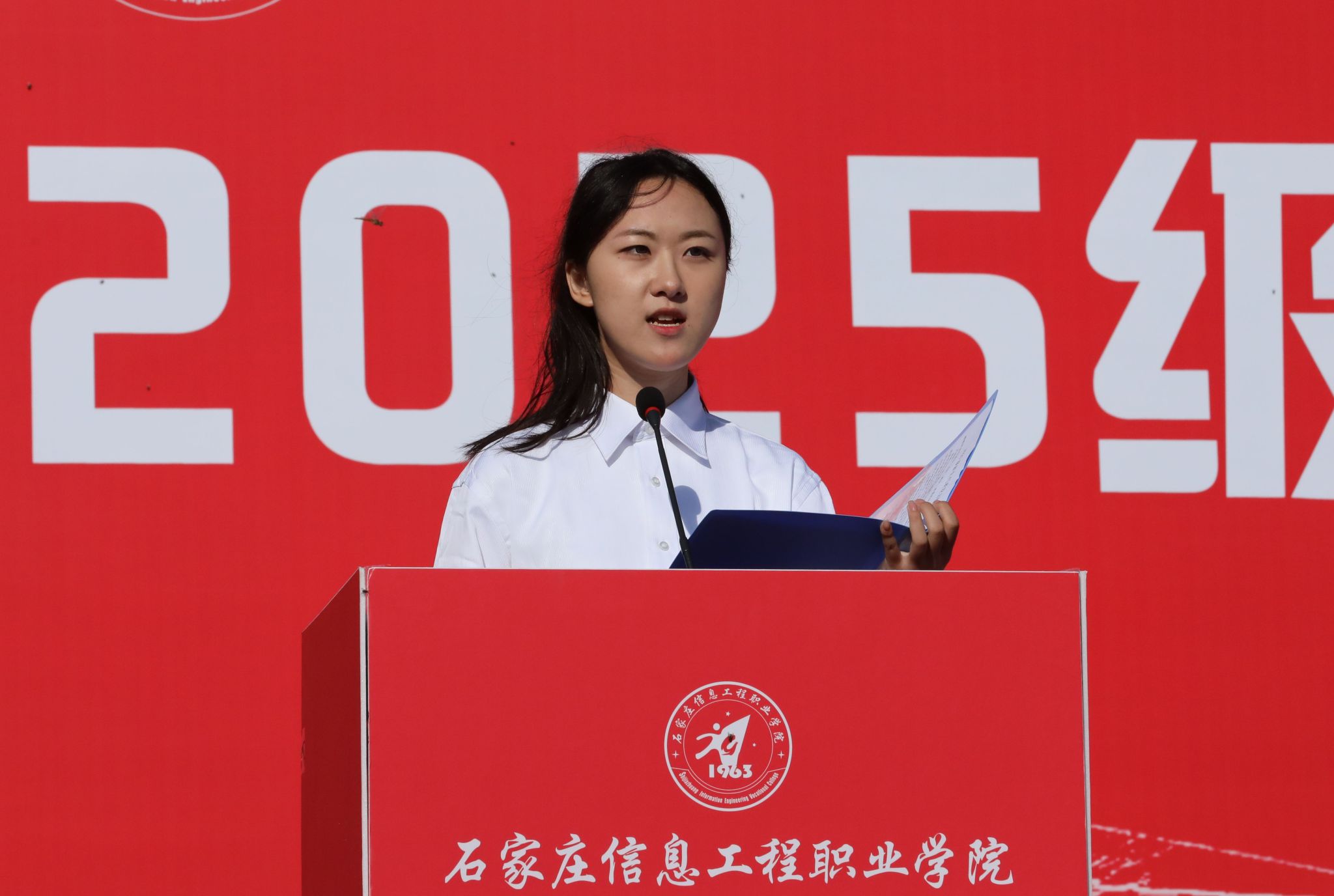 2025级大数据与会计专业16班马若暄同学作为新生代表发言时表示,将以军人的标准严格要求自己,坚决服从教官的安排与指挥;将发扬不怕吃苦、不怕受累的精神,努力面对一切困难与挑战;将与同学团结友爱、互帮互助、共同进步,并将这份精神带到今后的学习与生活中。