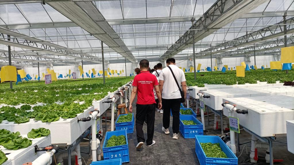 在藁城农业高科技园区,师生们参观了西红柿、黄瓜等新品种无公害试种大棚和绿叶蔬菜无土栽培大棚。一个个色彩鲜艳的西红柿,一簇簇鲜嫩的绿叶菜背后,队员们看到了现代化的农业生产方式:一台电脑,一个控制箱,一部智能温室物联网采集器,通过实时监控系统,只需按动开关,种植者就能掌控大棚的蔬菜种植。“智慧农业”渐行渐近,师生们不仅震撼于现代农业的魅力,更深刻地感受到科技赋能农业,发展农业现代化的重要意义。