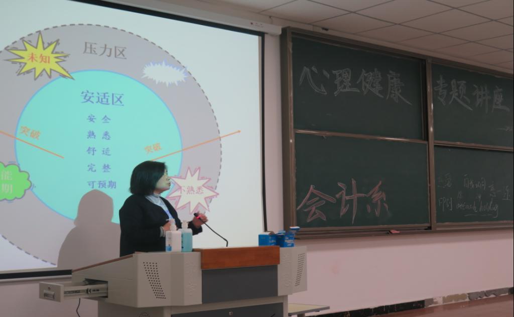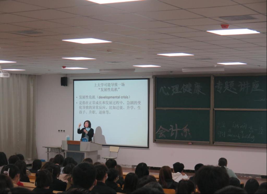 谭淑新结合同学们提出的问题,对如何增强自我认同、如何缓解焦虑、青春期如何释放压力等问题一一耐心解答,并结合会计专业、行业特点予以指导,同时结合三种常见的困境:生活在比较当中;想象与现实;自恋与孤独引导同学们要学会创造性适应,学会自我认同,学会辩证认识问题,学会学习,学会生活。