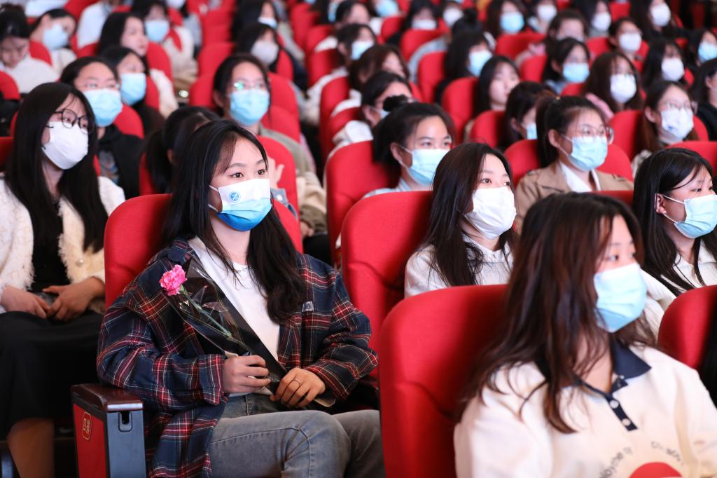 每位同学步入会场时,首先收到一朵祝福的鲜花。讲座现场,所有女生手持康乃馨满怀惊喜和感动,将热情洋溢、魅力四射的爱用创新的方式呈现。