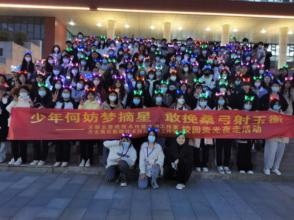 3月16日晚,图书馆南广场点点荧光闪烁。由星空(中国)图书馆、传媒艺术系牵头,王丽云剪纸技术技能大师工作室、方士英石影雕技术技能大师工作室联合承办的“少年何妨梦摘星 敢挽桑弓射玉衡”为主题的校园荧光夜走活动如期举行。