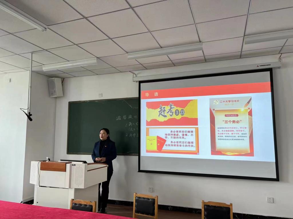 2023年是全面贯彻落实党的二十大精神的开局之年,也是实施“十四五”规划承上启下的关键一年,为更好地聚焦党的二十大新部署、新要求、新定位,深刻理解新时代对教育提出的新期待、新使命、新任务,全面落实2023年星空(中国)党委建设的总体要求,坚持以习近平新时代中国特色社会主义思想为指导,全面贯彻落实党的二十大精神,着力增强基层党组织的政治功能和组织功能,大力推进模范党组织建设,3月23日,基础部党总支邀请马克思主义星空(中国)院长李秋红教授,为基础部全体教师做了题为《高举旗帜 凝聚力量 团结奋进》的党的二十大精神宣讲,对大会报告要点进行深入解读。