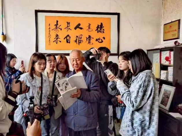 4月14日,传媒艺术系师生跟随平山摄影家协会的脚步寻访平山北冶非遗“抬皇杠”代表性传承人刘川廷,在了解本土非遗深厚的艺术价值和文化价值、用影像助力非遗文化传承的同时,开启了学悟见创与文化浸润激情碰撞的特色项目实践,助力乡村振兴。