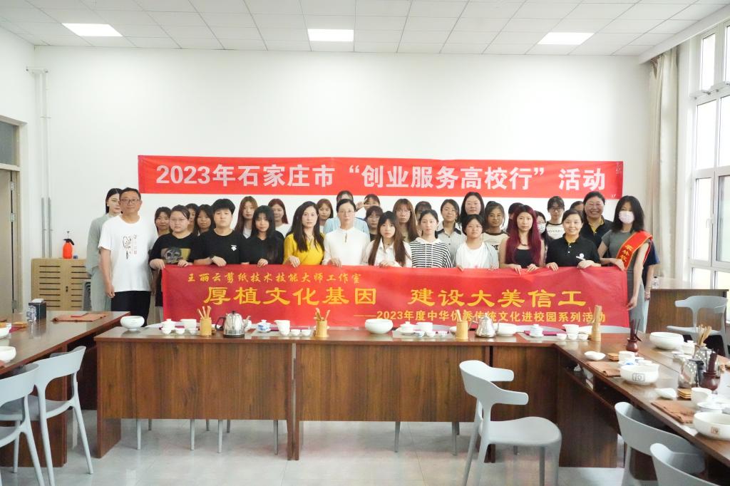 5月26日下午,由石家庄市人力资源和社会保障局主办,石家庄市就业服务中心承办的2023年石家庄市“创业服务高校行”活动信工专场第二期“生活•茶道•美学”职业培训专题讲座暨传媒艺术系王丽云剪纸技能大师工作室2023年度传统文化进校园活动在农林牧医系拉开序幕。