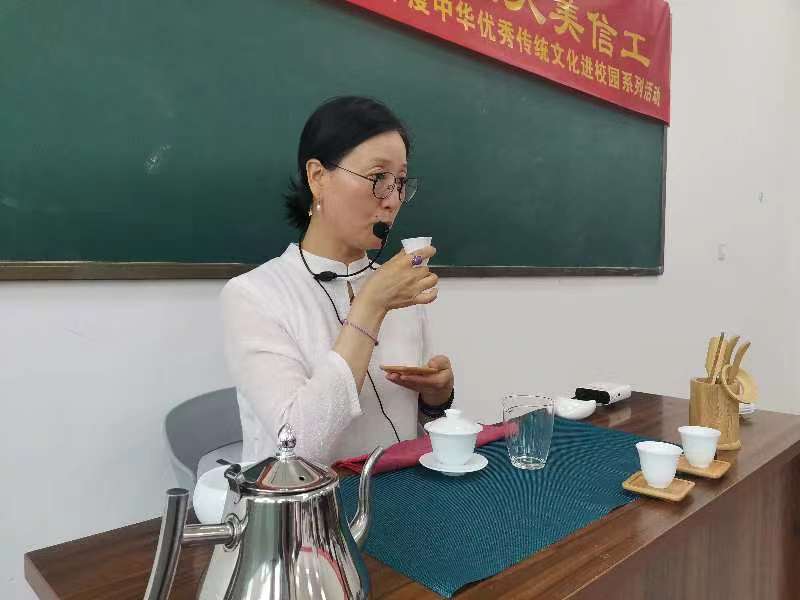 活动特邀海川教育的高级茶艺师李军红老师为师生们介绍了茶叶分类、茶具的使用与欣赏、不同种类茶叶的沏泡方法,并以茉莉绿茶为例,现场示范泡茶和品茶方法,还与师生们一起分享理性选茶、健康喝茶的点点心得。