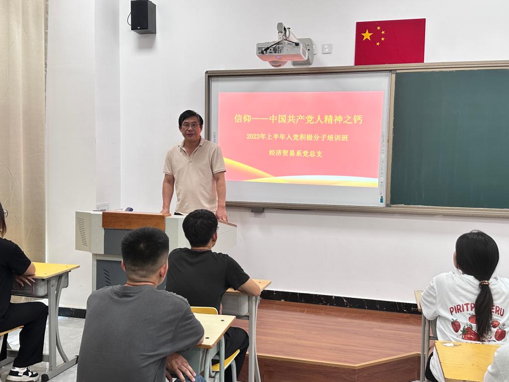 为进一步严格入党程序,规范和提高入党积极分子培养质量,经济贸易系党总支举办2023年上半年新确定入党积极分子培训班。党总支书记田洪舟以“信仰——中国共产党人精神之钙”为题作首次培训。