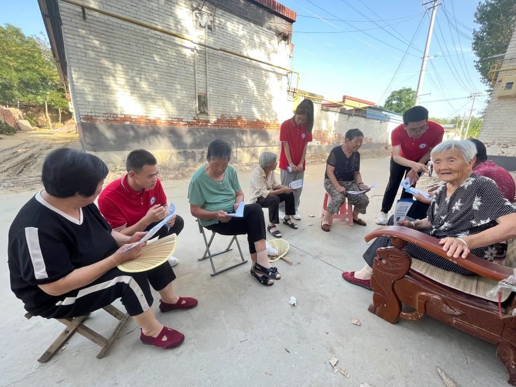 在志愿活动中彰显青年力量。引导青年将理论和实践相结合,积极参与“大思政”教育课程,是让其长才干、做贡献的重要举措。实践团在大道王庄村开展了一系列社会实践活动。在村主任王志详细的介绍下,实践团了解了乡村基本情况和近几年发展状况,并在村委会开展整理资料、优化电脑系统等志愿服务工作。随后,实践团顶着烈日骄阳,挨家挨户发放反诈宣传册,帮助村民下载安装“国家反诈中心”APP,并开启电话拦截和短信拦截功能,提高反诈防骗意识。