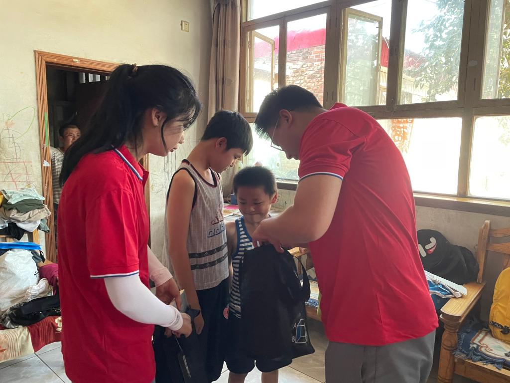 实践团成员在村干部带领下,来到当地五保户,残障儿童、失孤儿童家庭走访慰问,与他们亲切交流,详细了解他们近期生活状况、孩子读书等情况,同时为他们打扫卫生,发放大米、油、文具等慰问品。在失独家庭孟凡启家中,实践团得知年岁已高的奶奶不能辅导孙子学习时,采用线上“一对一”云辅导模式助力学习。临别时,奶奶眼含热泪,说:“党组织对我们这种家庭特别照顾,逢年过节就来人慰问,特别感动!”