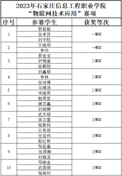 通过本次校赛,遴选了优秀选手加入到计算机应用系“三室”建设中,为后续的省赛、国赛做好准备。同时以“三室”为平台,真正实现 “以赛促教、以赛促学、以赛促练、以赛促改”,促进专业建设,为社会培养更多高素质物联网技术技能人才。