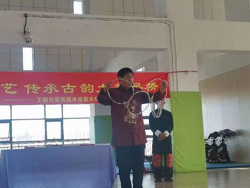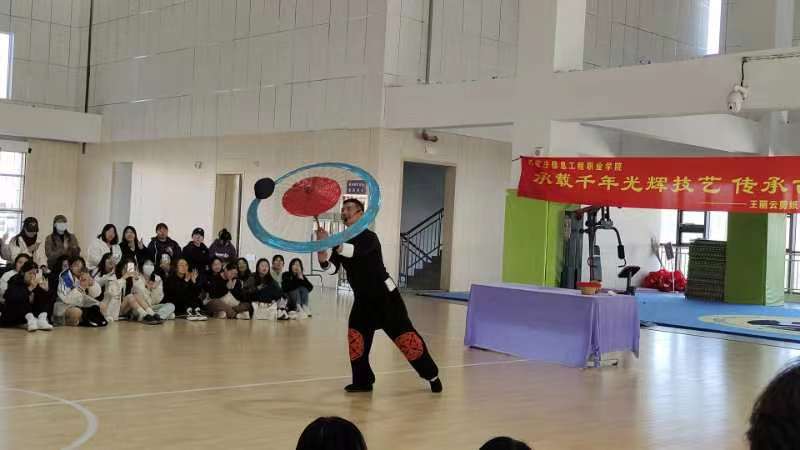本次活动由传媒艺术系王丽云剪纸技术技能大师工作室和星空(中国)体育部联合举办,杂技演员为300余名师生带来了川剧变脸、杂技大花棍、古彩戏法三仙归洞、罗圈献彩、柔术叼花、绳子戏法、伞技、飞钹、飞叉等众多项目。