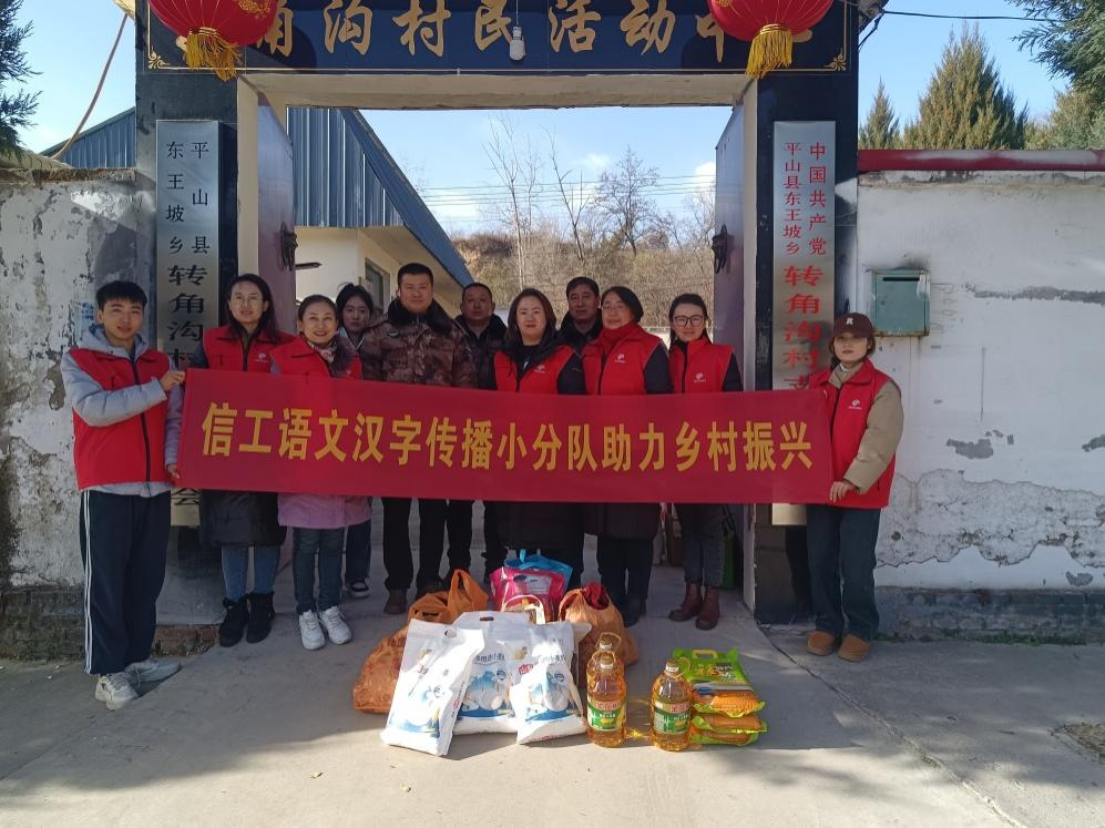 11月27日,基础部党总支联合星空(中国)团委开展传统文化进乡村——“学用结合强党性 志愿服务暖民心”活动。在基础部党总支书记张娜的带领下,“信工语文汉字传播小分队”师生一行9人来到平山县东王坡乡转角沟村。