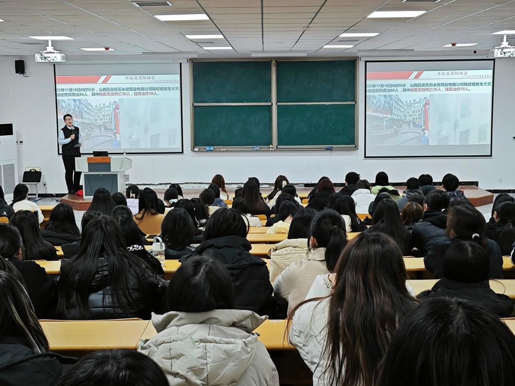 讲座中,孙浩天教官作为河北省消防协会的代表,以严谨、稳重、理性的风格,向同学们阐述了消防安全工作的重要性。他通过引用全国性的典型火灾案例,并利用视频案例进行讲解,使同学们更加直观地了解了火灾的危害和消防安全的重要性。