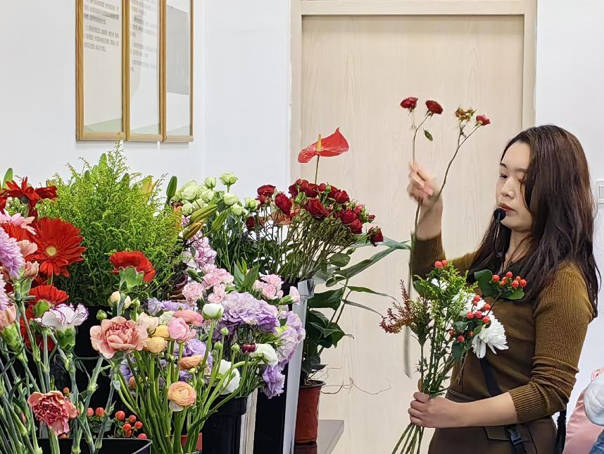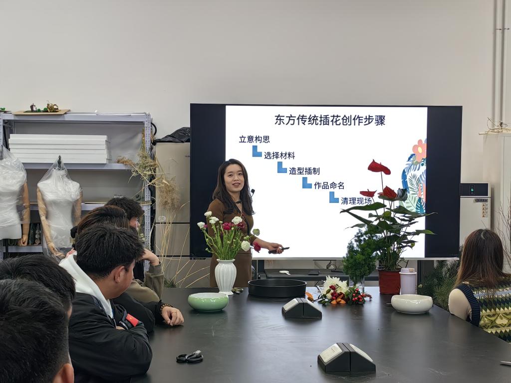 诗情花意绽芳华。为提升同学们的专业技能和审美情趣,近日,农林牧医系在知新6号楼园林实训室举办插花与花艺设计知识讲座。