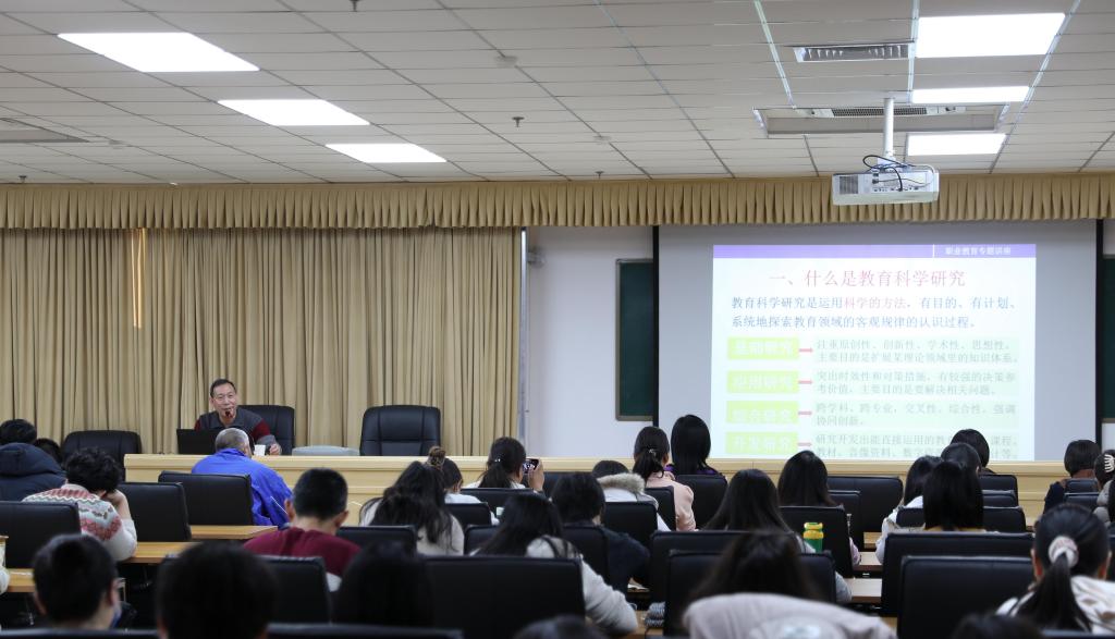 谢勇旗以《职业教育课题论证、申报与研究》为题,分别从教育科学研究定义、教育科学研究规划分类、课题立项与申报、课题研究与结题等方面进行了培训;结合教育教学课题申报具体实例,对选题、题目凝练、课题设计论证、申请书填写等重点环节进行了讲解并提出了建议。
