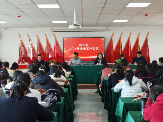 召开安全工作会议。3月7日,会计系召开了2024年安全工作会议,对系部安全工作进行了再动员、再部署。要求全体教师提高政治站位,树立底线思维,切实把安全工作抓牢抓实抓细,要定期开展安全隐患大排查,确保实训室、教室、宿舍等区域的用电安全。辅导员要结合本班实际,深入开展安全主题教育,同时要高度重视学生心理健康状况,深入摸排掌握学生心理动态,确保学生的心理健康教育落实落细,共同营造安全、和谐的校园环境。
