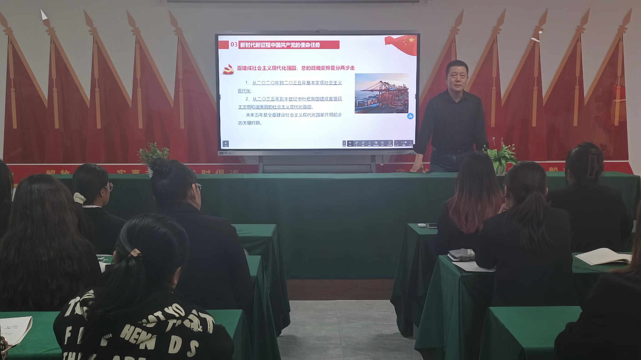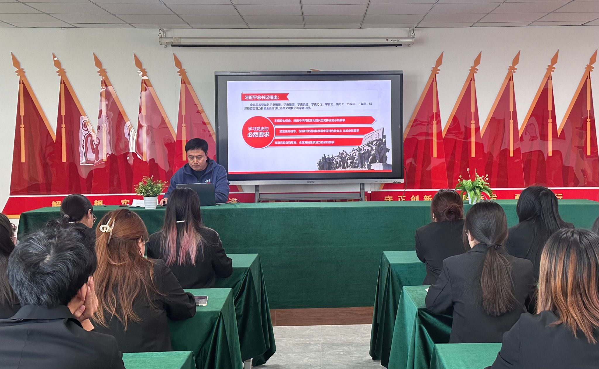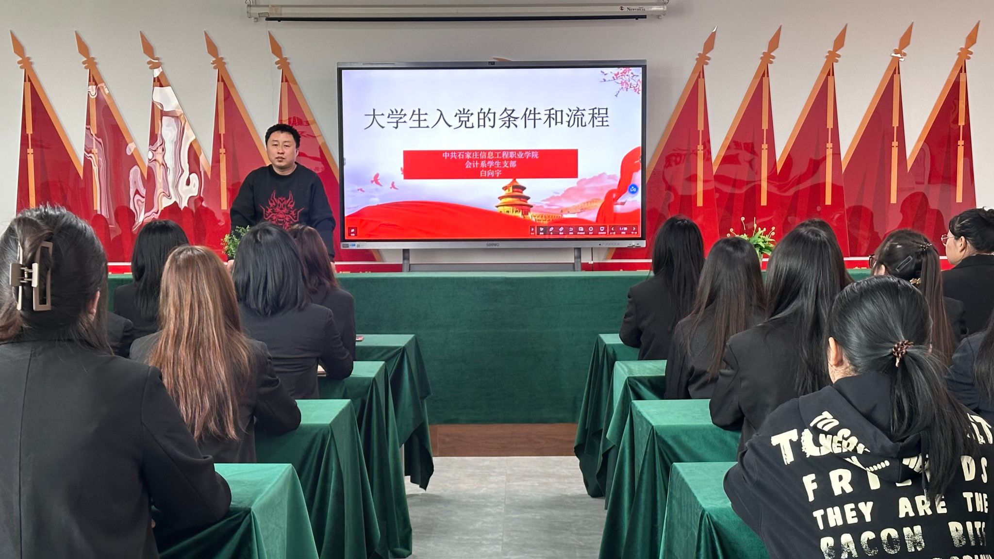 3月20日,会计系党总支副书记王云科带领同学们学党史,党课的主题为《感悟信仰的力量——中国共产党对新民主主义革命的艰辛探索》。他要求全体同学抓住机遇,加快发展。实现中华民族伟大复兴,是历史赋予中国共产党的光荣使命,党领导人民在过去的100年里写下了光辉篇章,也一定能够继续书写出更加壮丽的篇章。