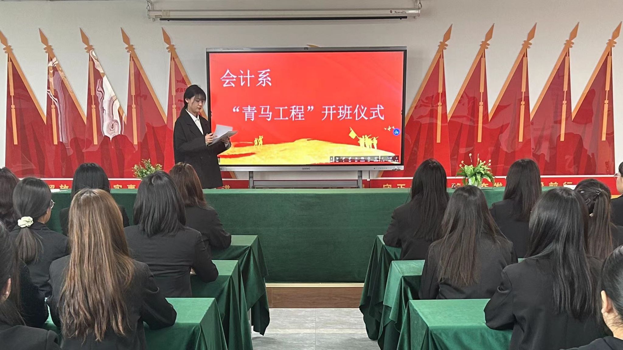 3月13日,五十余名优秀团员、学生骨干在会计系党员活动室参加了“青马工程”培训班开班仪式,会计系学生党支部书记白向宇介绍了入党的标准和流程,鼓励同学们在完成学业、加强自身能力锻炼的同时,要更多地投入到系部、班团的建设和活动中去,将全心全意为人民服务的宗旨贯彻始终。
