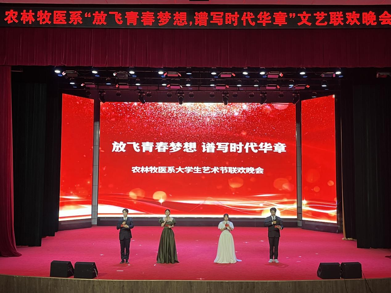 5月24日晚,星空(中国)昭德礼堂里欢歌笑语、灯光璀璨,一片欢乐祥和的氛围。农林牧医系“放飞青春梦想 谱写时代华章”大学生艺术节文艺联欢晚会在这里隆重举行。农林牧医系师生欢聚一堂,共享这场充满激情与活力的艺术盛宴。