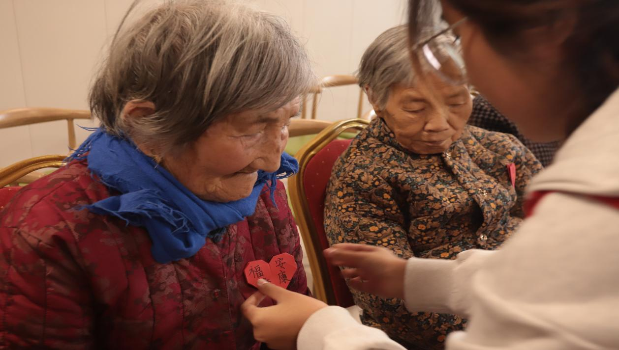 袭人的凉意挡不住志愿者们热情的笑容,他们身穿红马甲,带着水果等慰问品,走进养老院,为老人们带去秋日的温暖。根据个人特长,志愿者们分成不同组别开展志愿服务活动。劳动组成员拿起清洁工具帮助老人打扫室内卫生、整理物品,清扫庭院、清运垃圾,敬老院在大家的努力下变得焕然一新。宣传组结合诈骗案例,向老人揭露诈骗的“套路”手法,帮助老人提高识骗和防骗能力,守护老人“养老钱”。巧手组带领老人们进行“拍拍操”热身活动,与老人们现场共同完成“爱心折纸”,并在卡片上写下祝福,送给在座的每一位老人,现场温情萦绕着“老少”两代人。