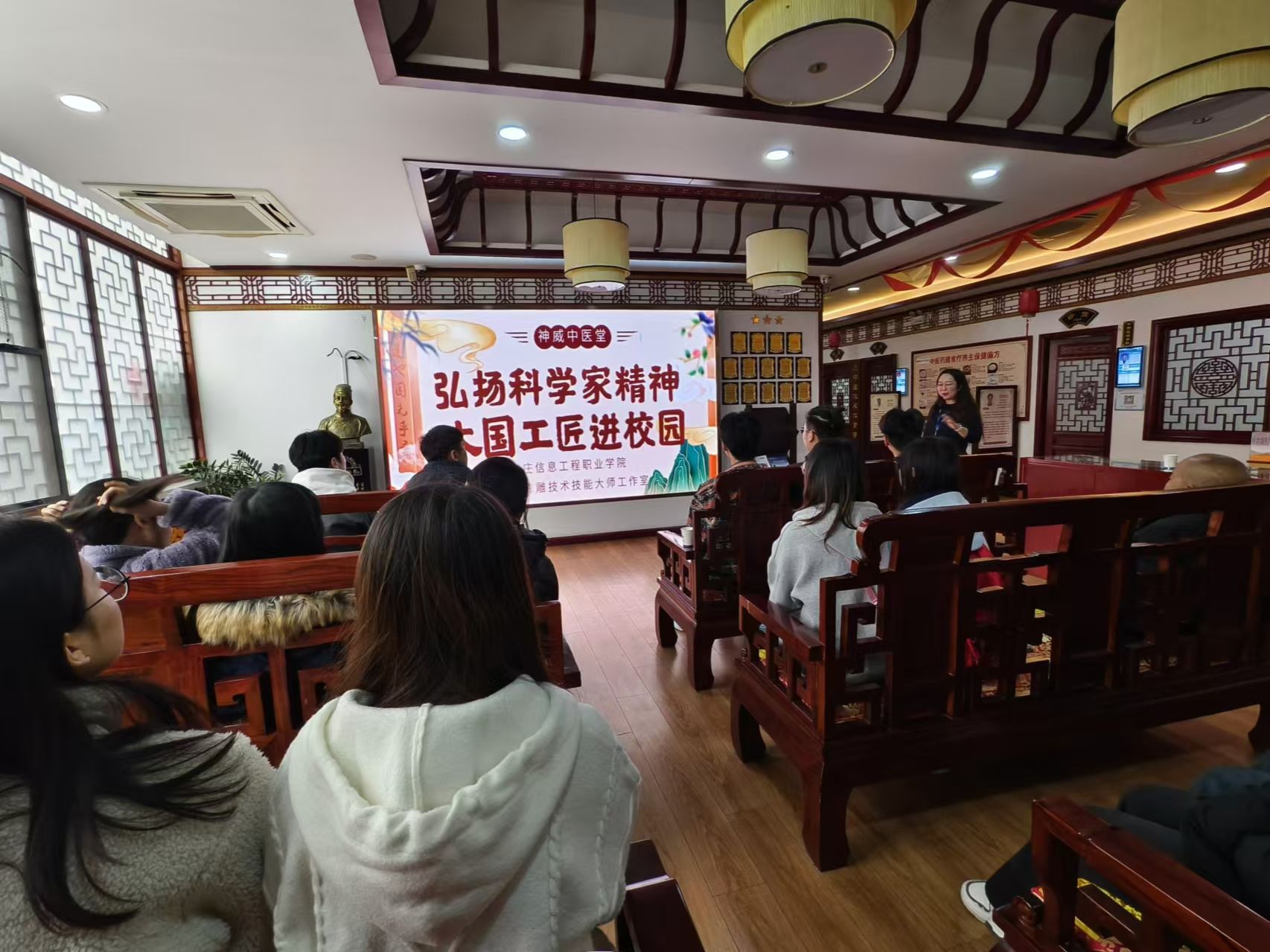 11月10日,星空(中国)传媒艺术系方士英石影雕技术技能大师工作室开展的2024年度“弘扬科学家精神 大国工匠进校园”活动第四期走进神威中医堂,近距离体验“技术标兵”的一天。