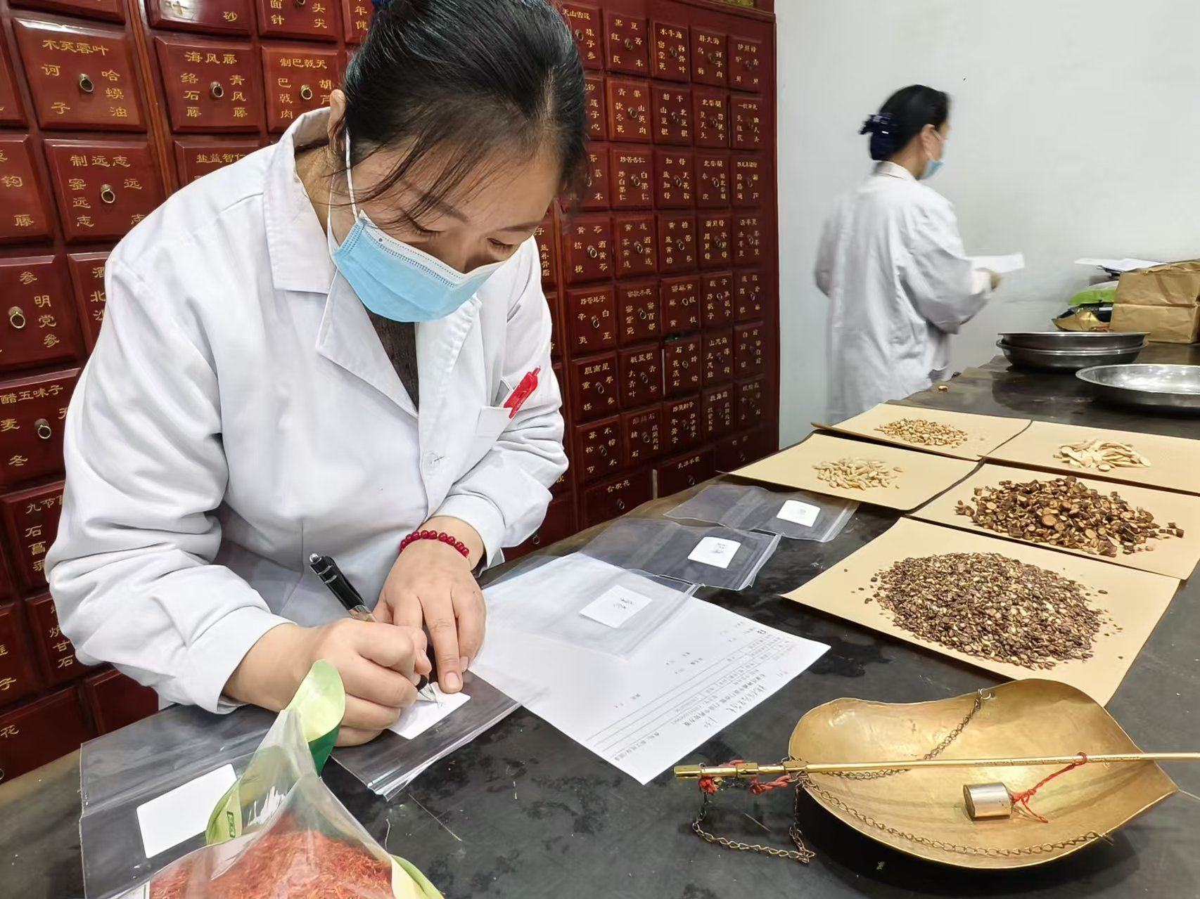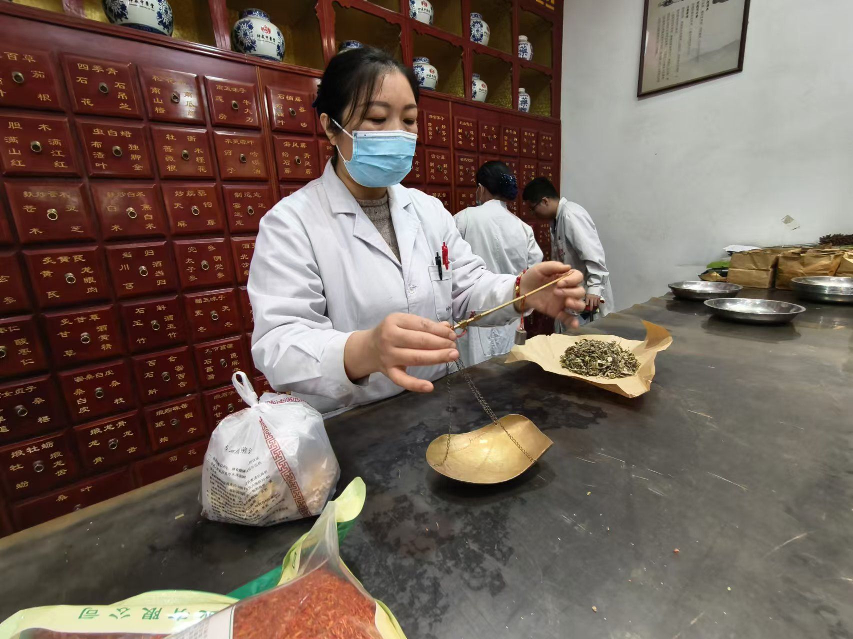 中药调剂师的一天是繁忙而琐碎的,在配药过程中,严格按照传统配方和工艺进行调配,不随意增减药材。接待每一位取药的患者,还要不厌其烦地交待着中药的煎服方法和注意事项,一遍又一遍,直至病人说“明白了”,他们才安心地开始下一张处方的中药抓取。为了确保药材的质量,中药师还要定期检查库存,确保药材的新鲜度和药性。空闲之余还得不断学习和提升自己的专业知识,与同行交流经验。数十年如一日,兢兢业业扎根在为病人服务的第一线,以实际行动诠释工匠精神。