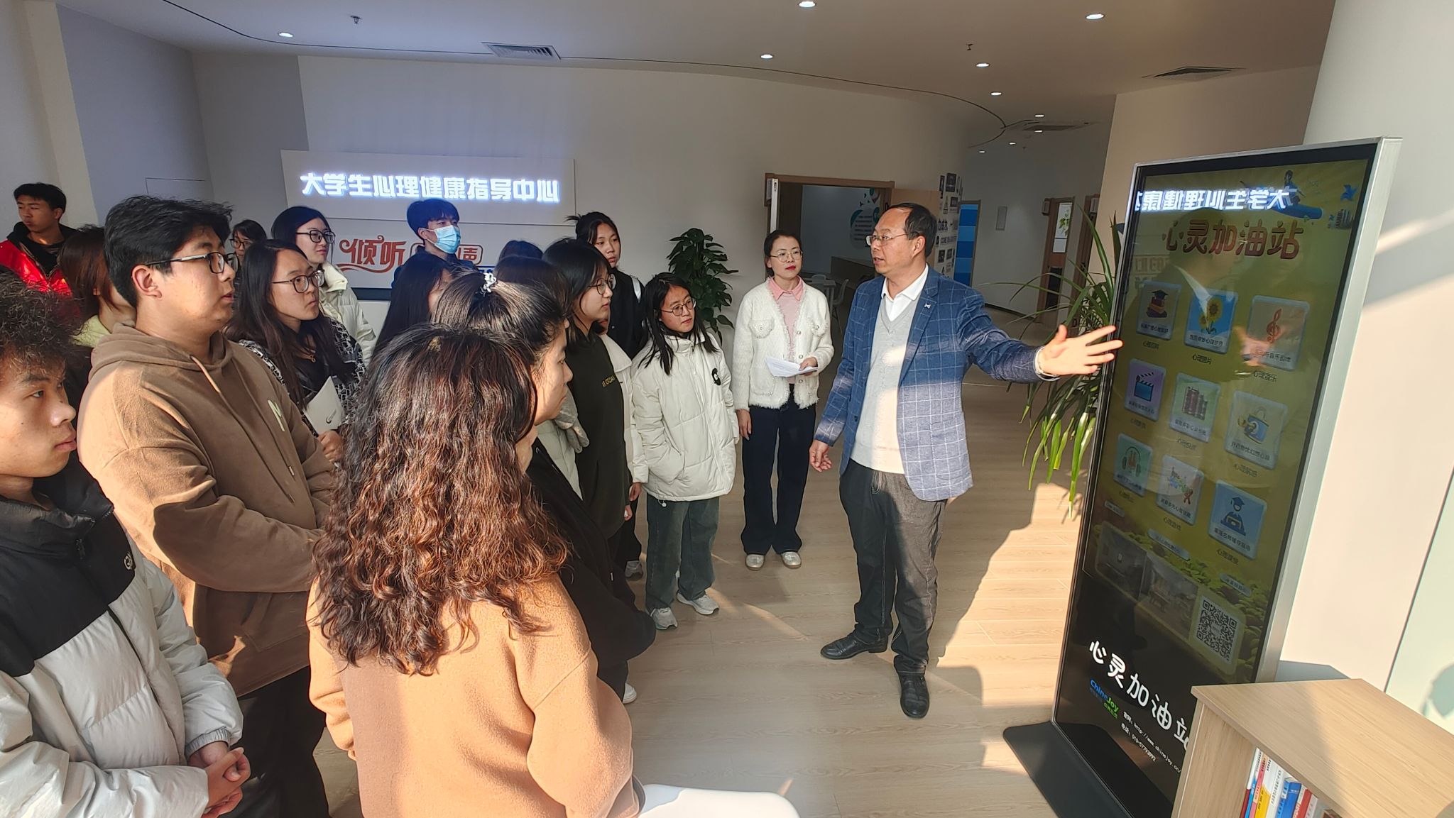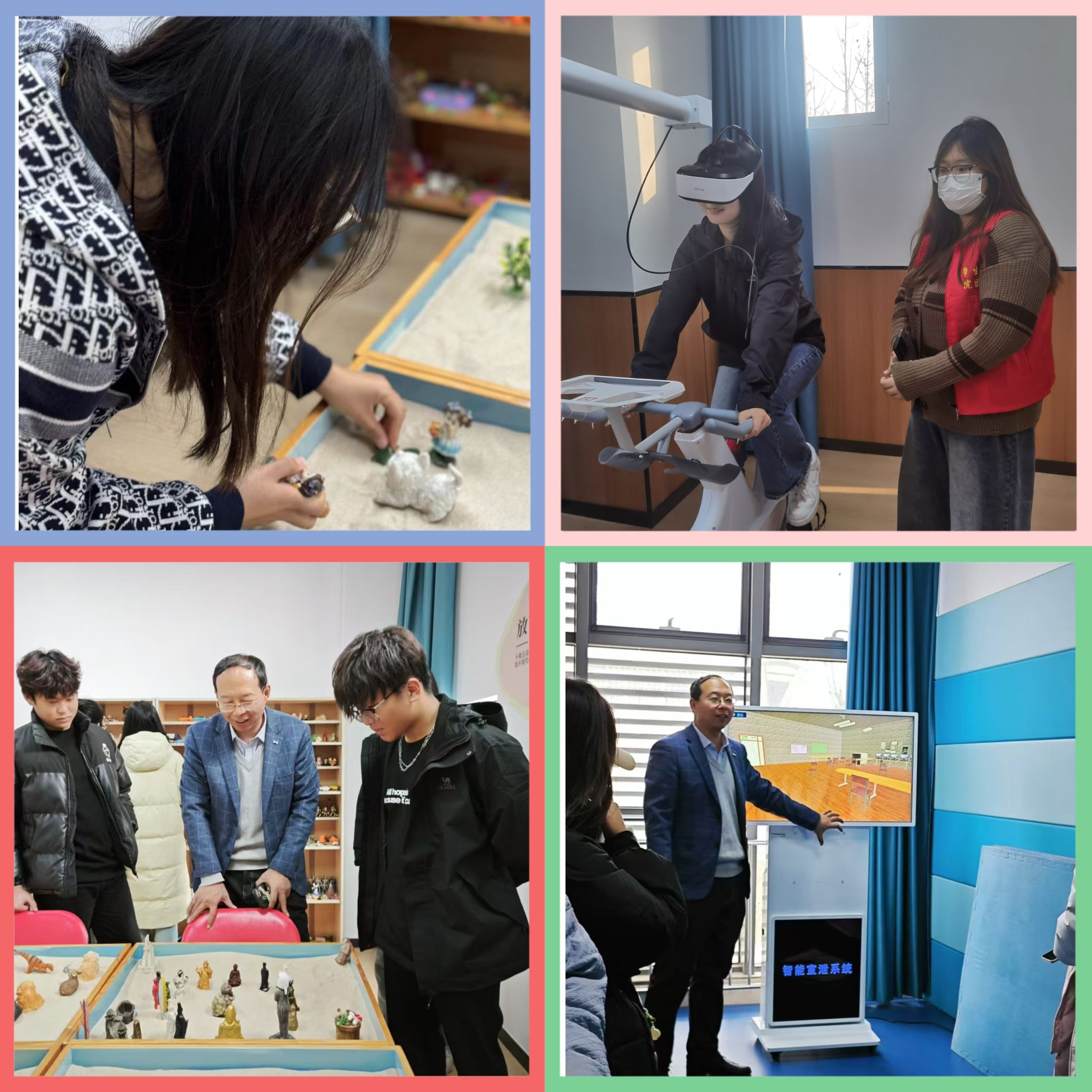 心理指导中心韩凯军老师带领大家参观了中心咨询室,逐一介绍了个体咨询室、团体辅导室、宣泄室等各功能室的布局和使用方法。同学们参观的同时也亲身体验了各种设施设备,如放松解压设备沙盘、AR单车、按摩椅等。在活动中心,大家充分感受到心理咨询室带给大家的安静、舒适、放松、愉悦体验。最后,韩凯军老师给同学们进行了“作为班级心理委员如何更好地去开展相关工作”的培训。