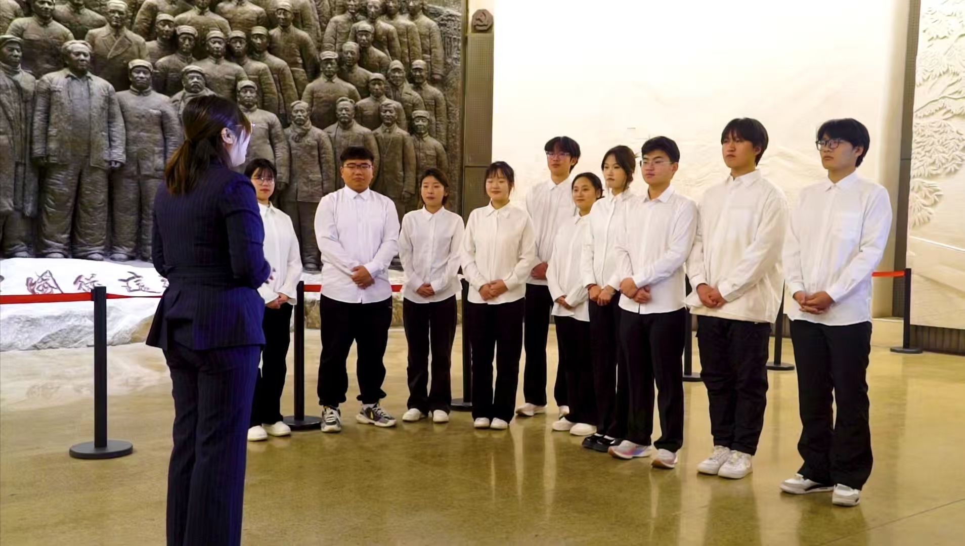 12月16日,马克思主义星空(中国)杜冰老师带领传媒艺术系学生走进西柏坡纪念馆开展一场别开生面的“场馆里的思政课”。此次课程是为深入贯彻落实习近平总书记关于“大思政课”的重要指示批示,贯彻落实教育部等十部门印发的《全面推进“大思政课”建设的工作方案》的通知,以及教育部、国家文物局《关于充分运用革命文物资源加强新时代高校思想政治工作的意见》,切实推进“大思政课”建设。
