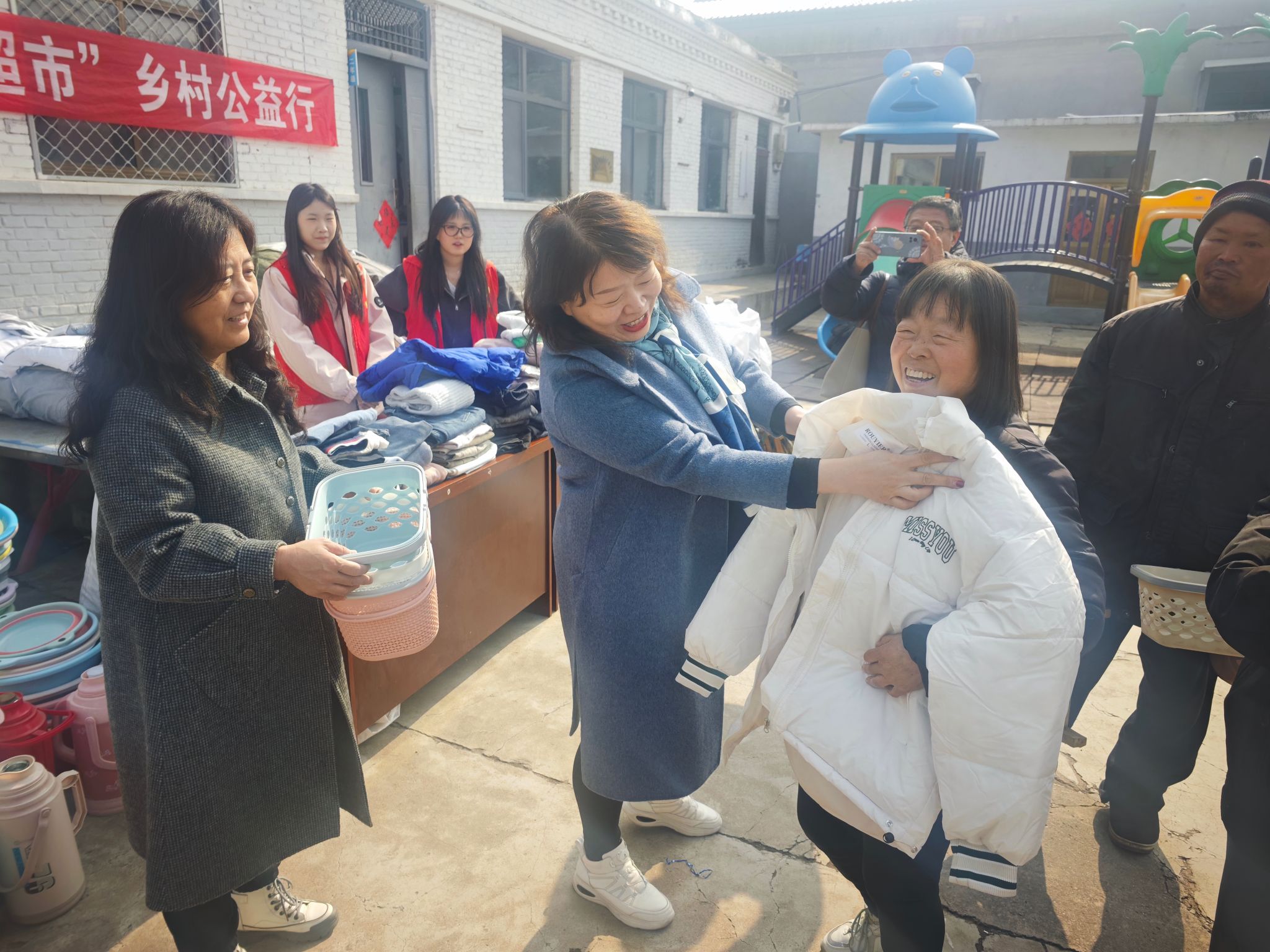 “爱心超市”惠民生,物资传递暖人心。师生志愿者在沿庄村村委会设立“爱心超市”,将会计系师生捐赠的衣服、书籍、文具等生活物品分类摆放,供村民按需挑选。村民们手拿自己需要的物品,满脸洋溢着喜悦的笑容,现场氛围温馨融洽。“爱心超市”不仅是资源的循环利用,更是爱心的延续,未来将探索更多公益形式,助力乡村发展。